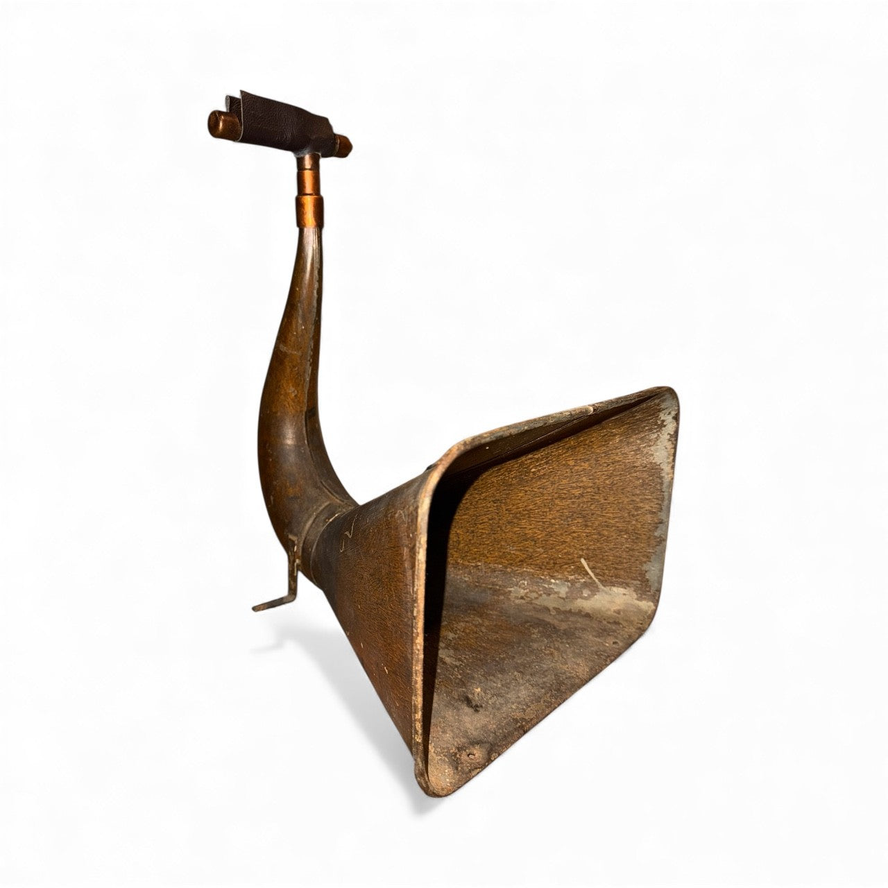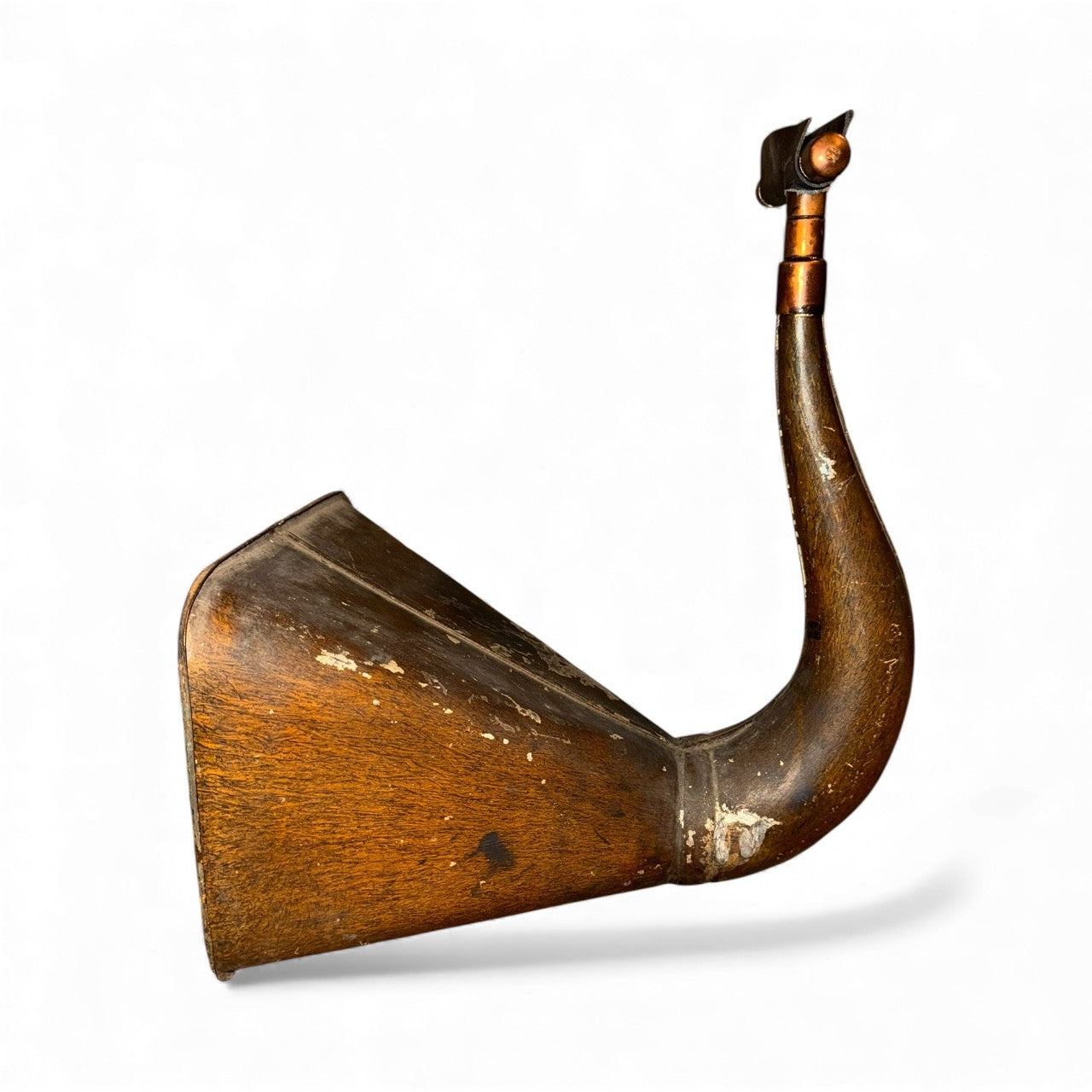 The Amberola X iHORN is made from an Edison Victrola Phonograph, Amberola series. These were manufactured between 1911 and approximately 1926, when the Edison company failed. This horn was an internal speaker housed inside the Victrola wooden cabinet. The horn was originally painted with a wood grain faux finish, hand painted to match the wooden cabinet into which it was installed. By 1920, they have learned that fabric will not deaden the sound and all such horns are then black. The Amberola X packs a wallop of volume and tone.