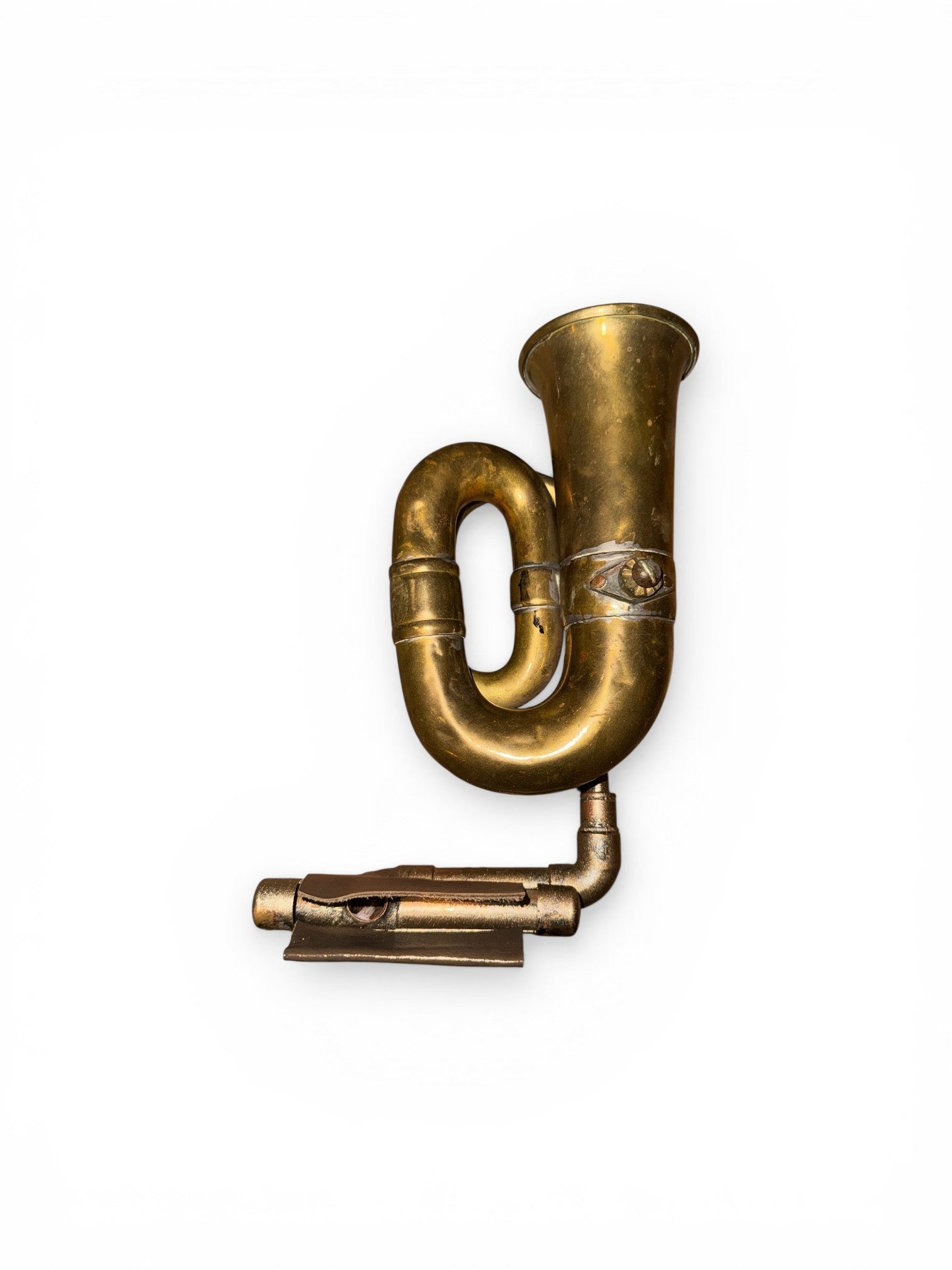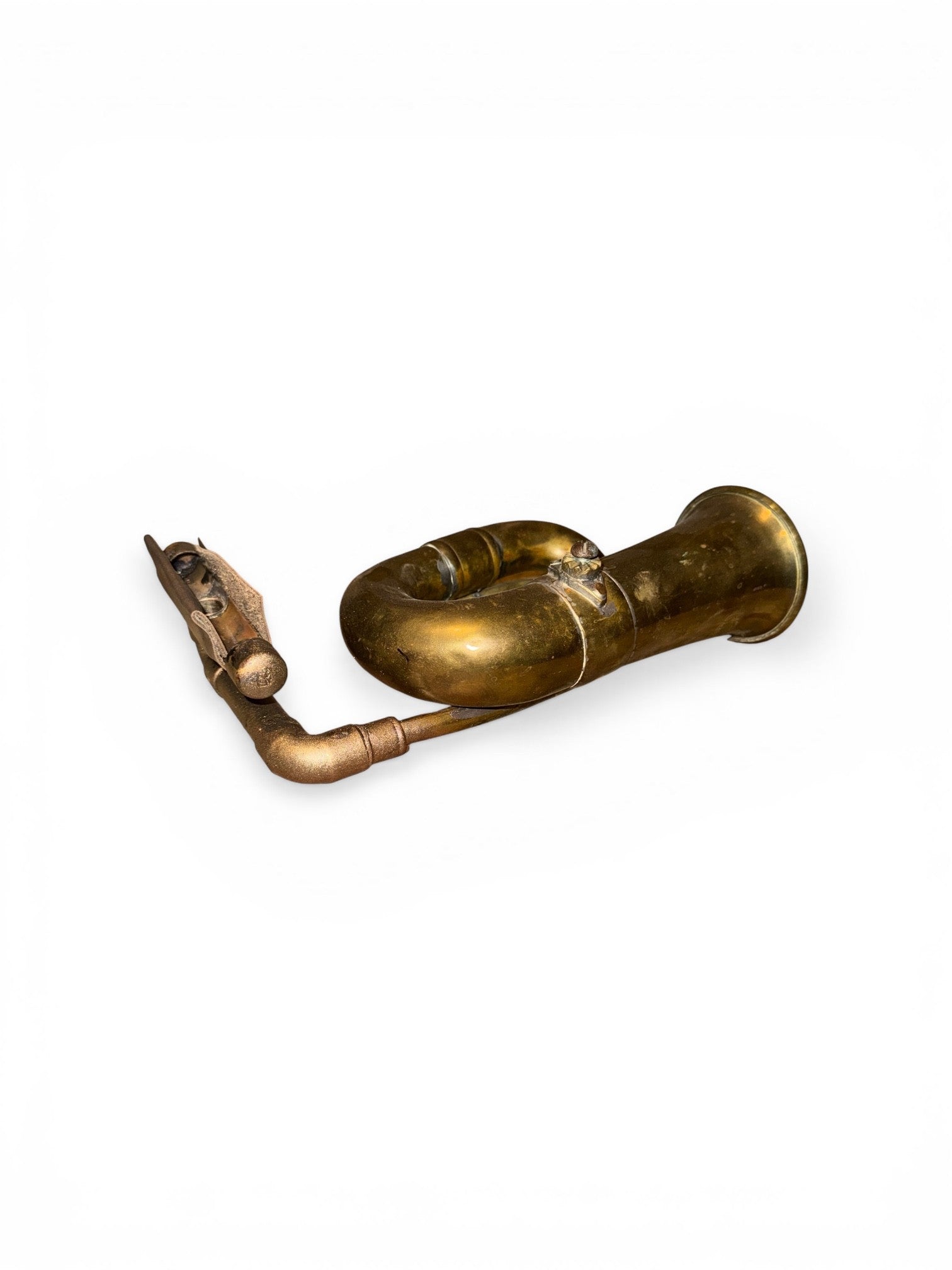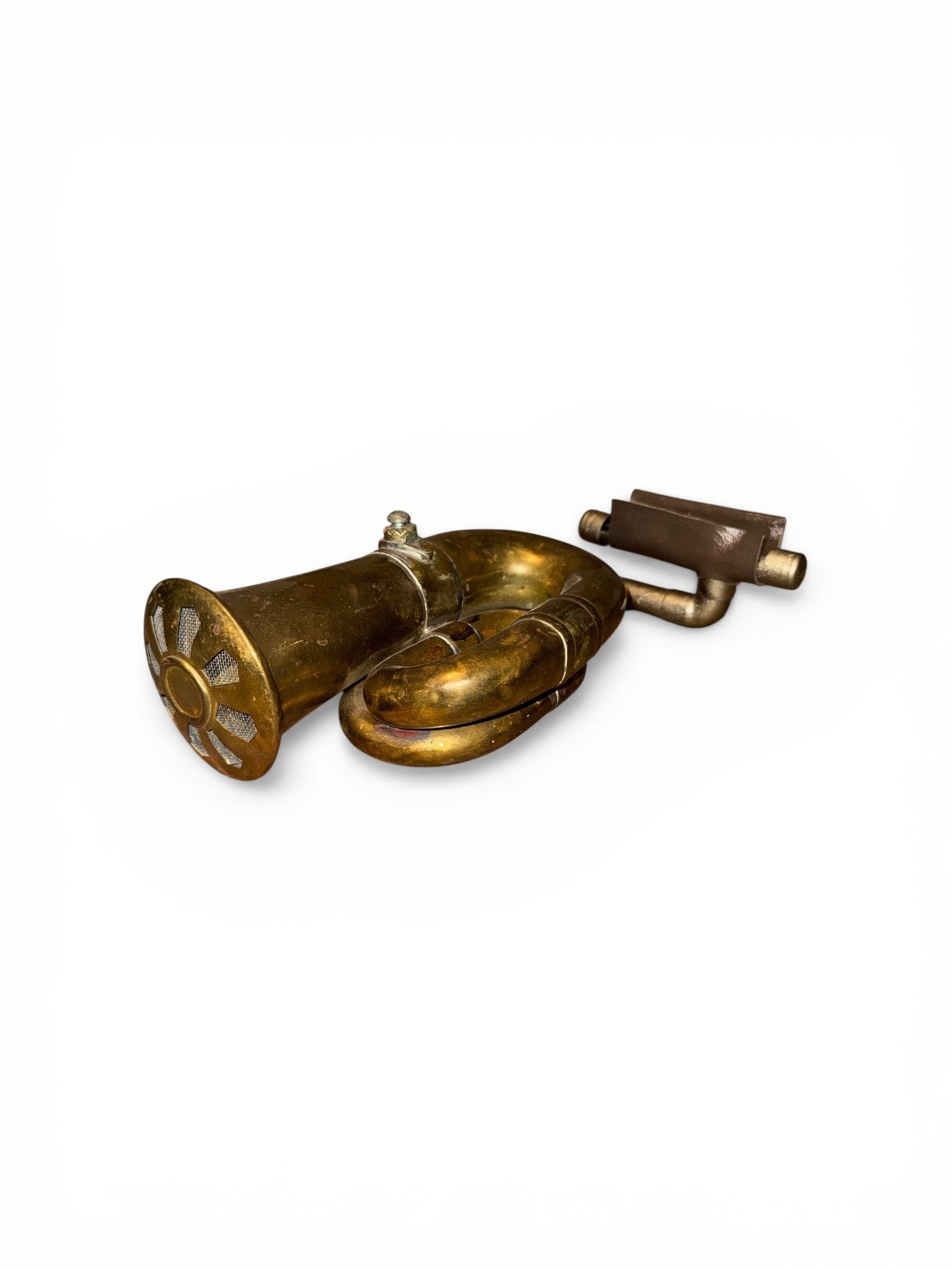 The Big Condor iHORN is made from a brass Condor bulb horn which was regularly used on automobiles, motorcycles and bicycles. This particular horn was believed to have been made in approximately the 1940’s and was most likely used on a motorcycle. The Big Condor iHorn is part of the industrial revolution . It is historic in the manner in which it contributed to the mobility on wheels.