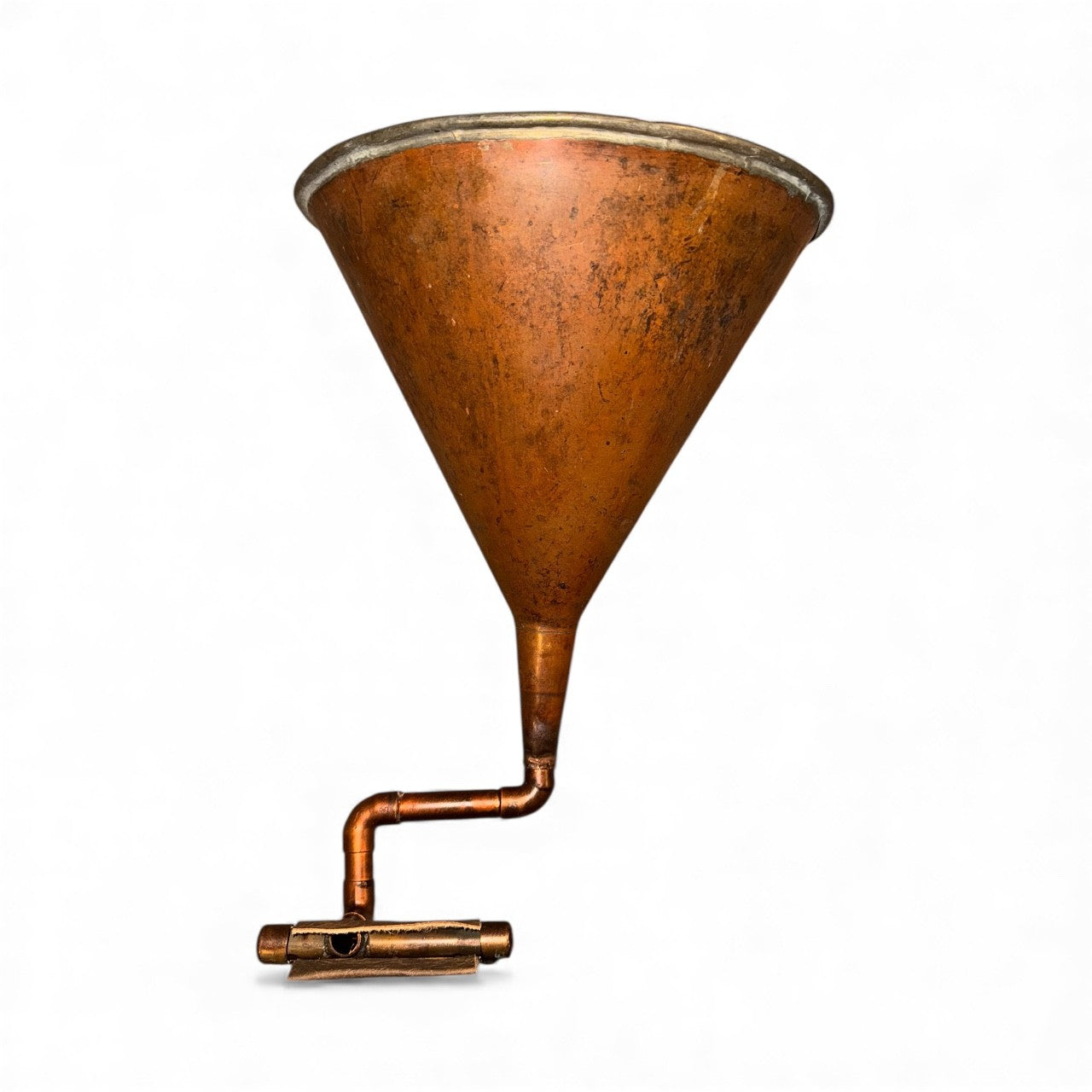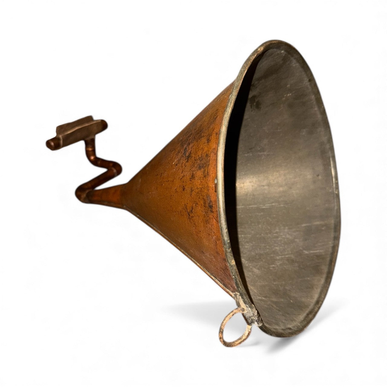 The Big Copper Funnel iHorn is made from a hand made antique copper funnel, probably from the prohibition era. Copper funnels were used as part of the still in the manufacture of illegal alcohol when our government decided it was prudent to legislate morality, an experiment gone awry. The Big Copper Funnel iHorn is a simple yet effective tool, its patina and functionality work as well today as when it was first made. Regardless of its age, The Big Copper Funnel iHorn is remarkable in simplicity and grace.