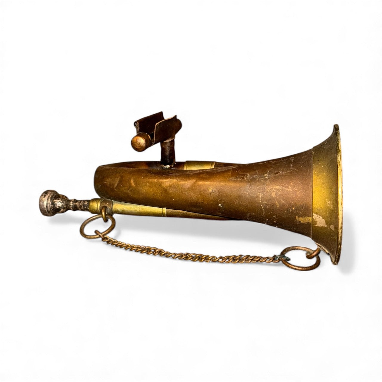 The Bugle iHORN is made from a vintage brass or copper Bugle. The Bugle is synonymous with the infantry. Even in the heat of the battle, on a cold night these brave men responded to the call of the horn, summoning the right. A bugle call is a short tune, originating as a military signal announcing scheduled and certain non-scheduled events on a military installation, battlefield, or ship. Historically, bugles, drums, and other loud musical instruments were used for clear communication in the noise and confusion of a battlefield. The Bugle is a symbol of freedom and America’s role as a protector of the underdog. It shines on our responsibility to insure human rights throughout the world, like a pillar of light which protects against man’s inhumanity to man.