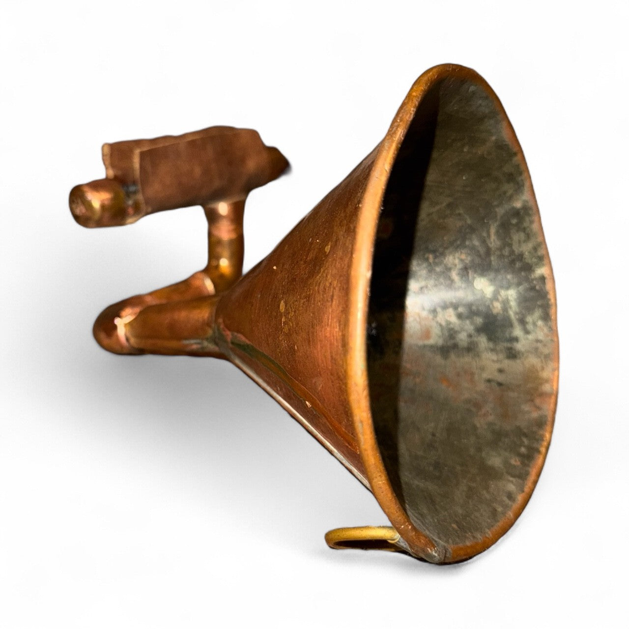 The Copper Funnel iHorn is made from a hand made antique copper funnel, probably from the prohibition era. Copper funnels were used as part of the still in the manufacture of illegal alcohol when our government decided it was prudent to legislate morality, an experiment gone awry. The Copper Funnel iHorn is a simple yet effective tool, its patina and functionality work as well today as when it was first made. Regardless of its age, The Copper Funnel iHorn is remarkable in simplicity and grace.