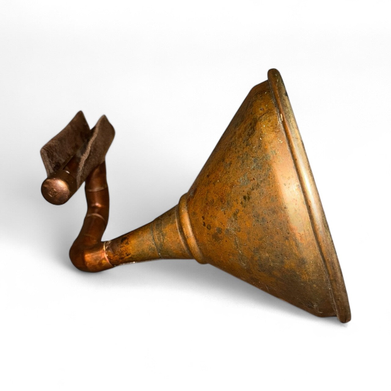 The Copper Funnel iHorn is made from a hand made antique copper funnel, probably from the prohibition era. Copper funnels were used as part of the still in the manufacture of illegal alcohol when our government decided it was prudent to legislate morality, an experiment gone awry. The Copper Funnel iHorn is a simple yet effective tool, its patina and functionality work as well today as when it was first made. Regardless of its age, The Copper Funnel iHorn is remarkable in simplicity and grace.