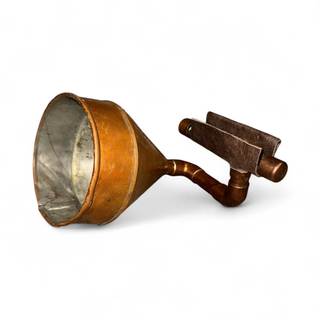 The Copper Funnel iHorn is made from a hand made antique copper funnel, probably from the prohibition era. Copper funnels were used as part of the still in the manufacture of illegal alcohol when our government decided it was prudent to legislate morality, an experiment gone awry. The Copper Funnel iHorn is a simple yet effective tool, its patina and functionality work as well today as when it was first made. Regardless of its age, The Copper Funnel iHorn is remarkable in simplicity and grace.