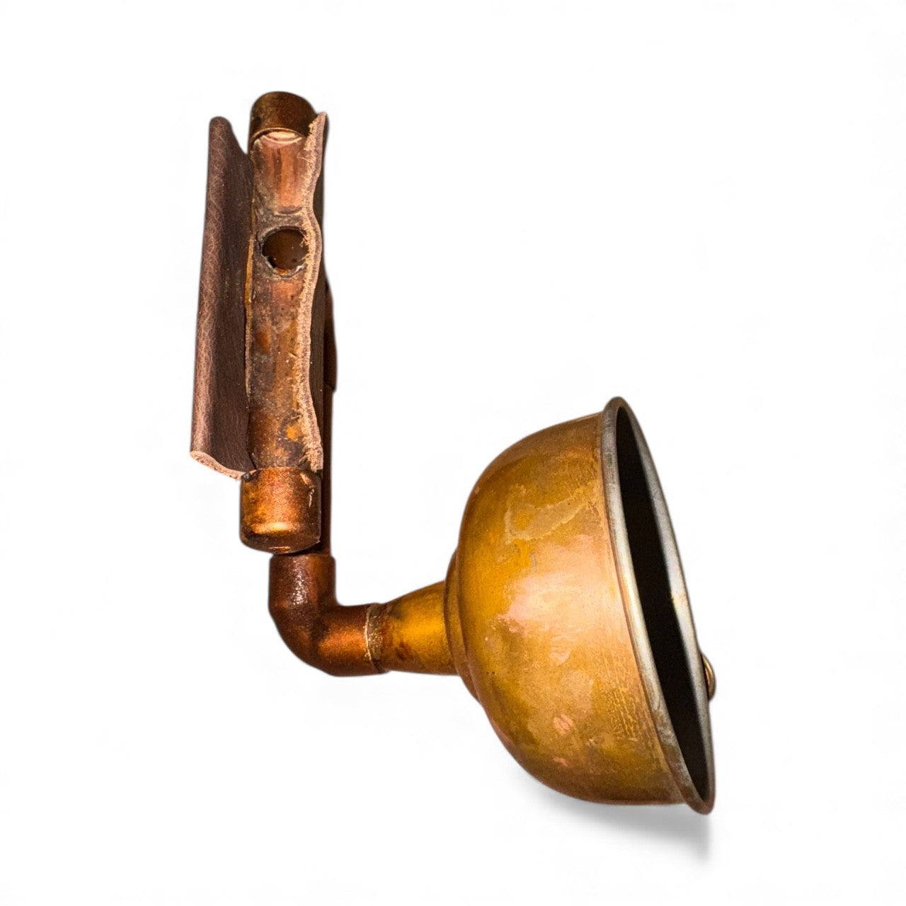 The Copper Funnel iHorn is made from a hand made antique copper funnel, probably from the prohibition era. Copper funnels were used as part of the still in the manufacture of illegal alcohol when our government decided it was prudent to legislate morality, an experiment gone awry. The Copper Funnel iHorn is a simple yet effective tool, its patina and functionality work as well today as when it was first made. Regardless of its age, The Copper Funnel iHorn is remarkable in simplicity and grace.