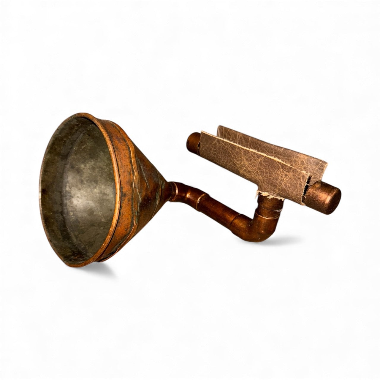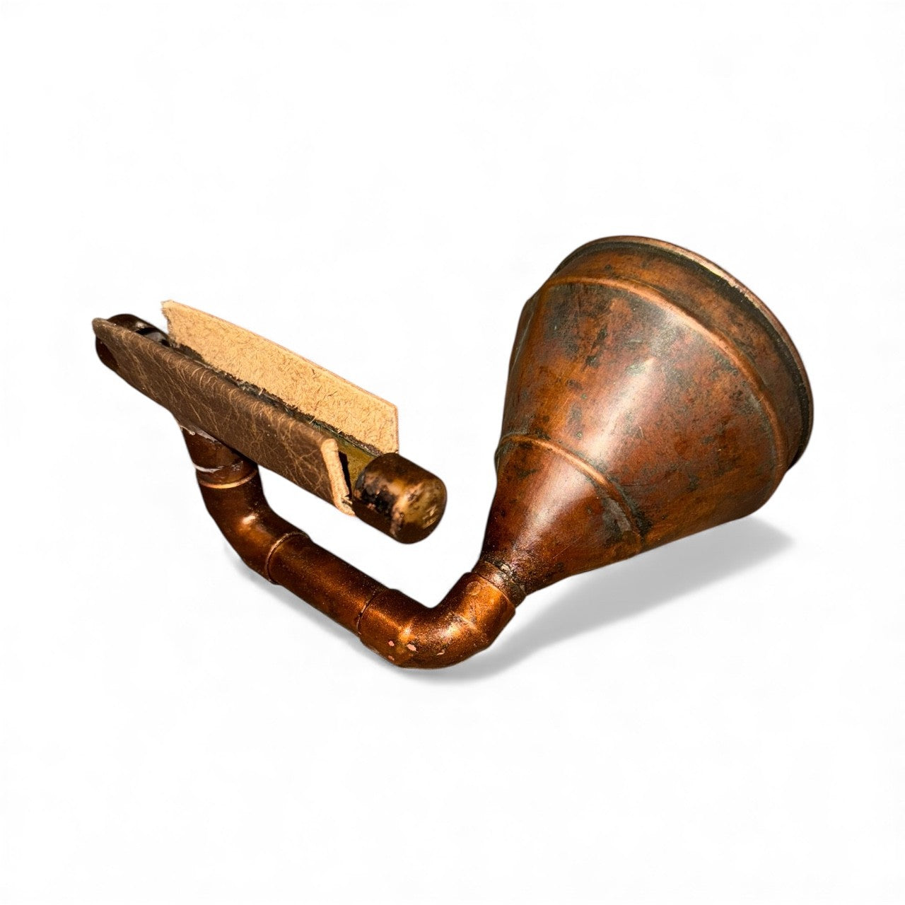 The Copper Funnel iHorn is made from a hand made antique copper funnel, probably from the prohibition era. Copper funnels were used as part of the still in the manufacture of illegal alcohol when our government decided it was prudent to legislate morality, an experiment gone awry. The Copper Funnel iHorn is a simple yet effective tool, its patina and functionality work as well today as when it was first made. Regardless of its age, The Copper Funnel iHorn is remarkable in simplicity and grace.