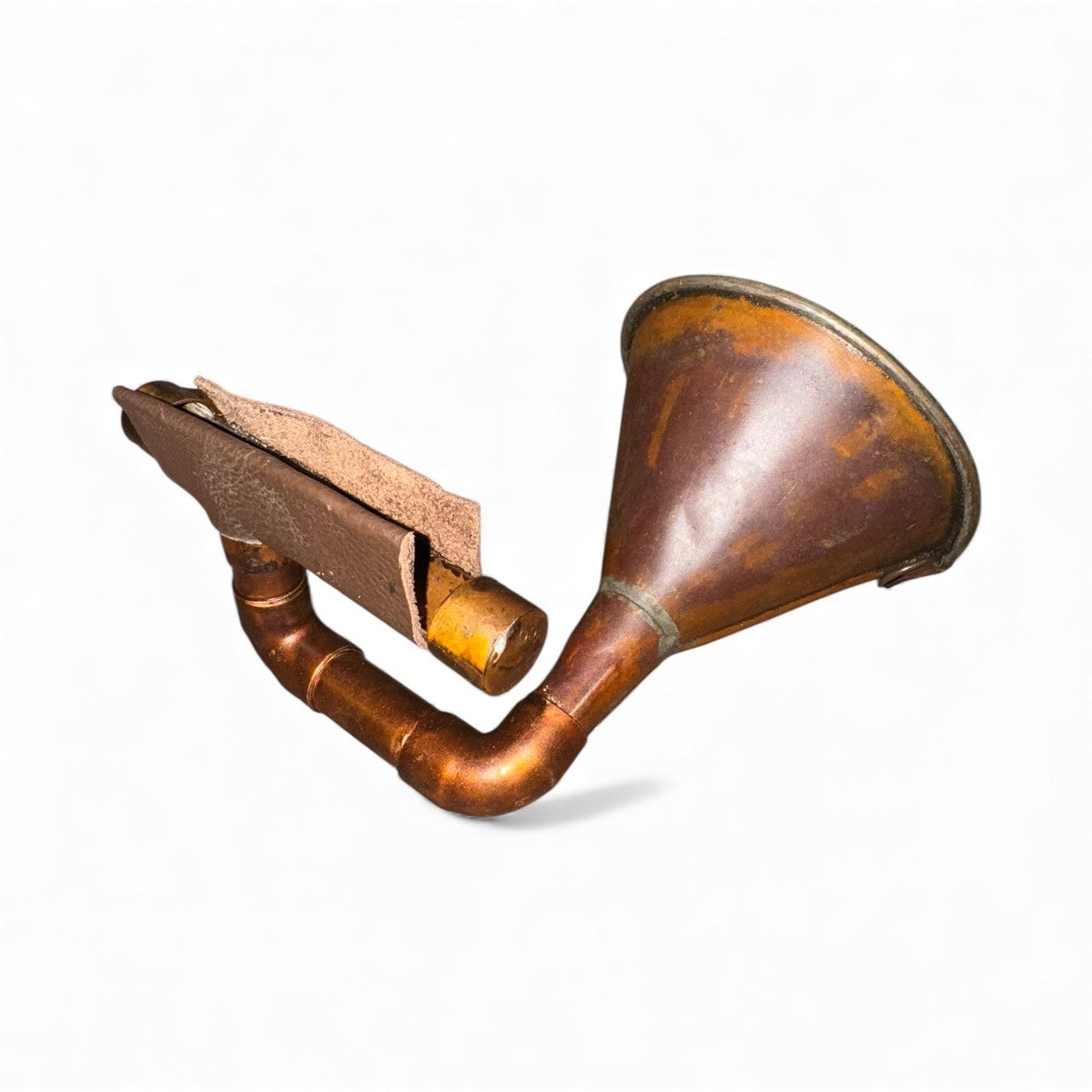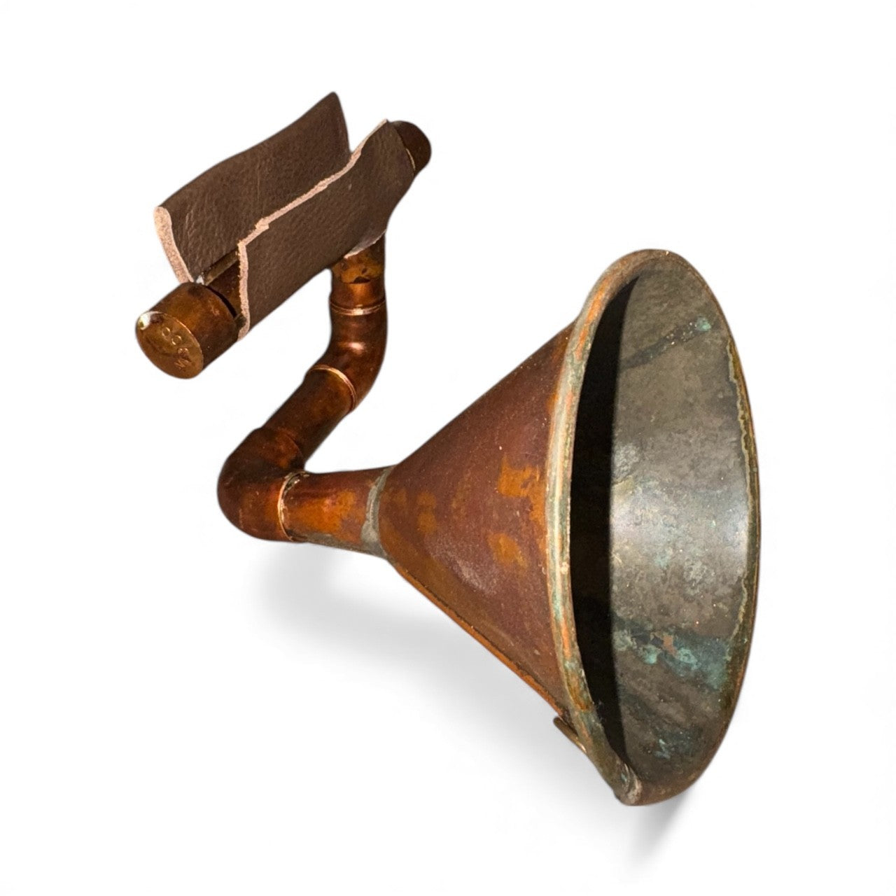 The Copper Funnel iHorn is made from a hand made antique copper funnel, probably from the prohibition era. Copper funnels were used as part of the still in the manufacture of illegal alcohol when our government decided it was prudent to legislate morality, an experiment gone awry. The Copper Funnel iHorn is a simple yet effective tool, its patina and functionality work as well today as when it was first made. Regardless of its age, The Copper Funnel iHorn is remarkable in simplicity and grace.
