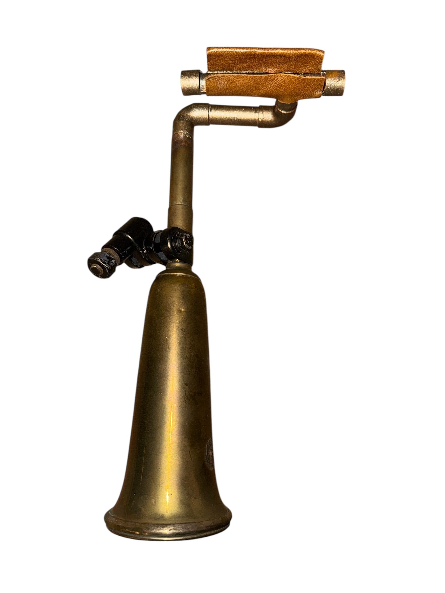 The Desmo iHORN is made from a brass vintage English Desmo automobile horn, made in the era of the Model T. Desmo horns are highly collectible in the automobilia world. The Desmo horn, also known as the cornicello, is a twisted horn-shaped symbol that originated in ancient Italy. It was a symbol of fertility and prosperity, and was often associated with the horns of sacred animals. Desmo Ltd. was founded in 1922. These horns were frequently used on MG automobiles, which are British made vehicles. From 1850 through the early 1950s, Birmingham was known as the area in England responsible for the manufacturer of brass and copper items. The Desmo is tuxedo sharp, formal but fertile. It is historic in the manner in which it contributed to the automotive experience, then and now.