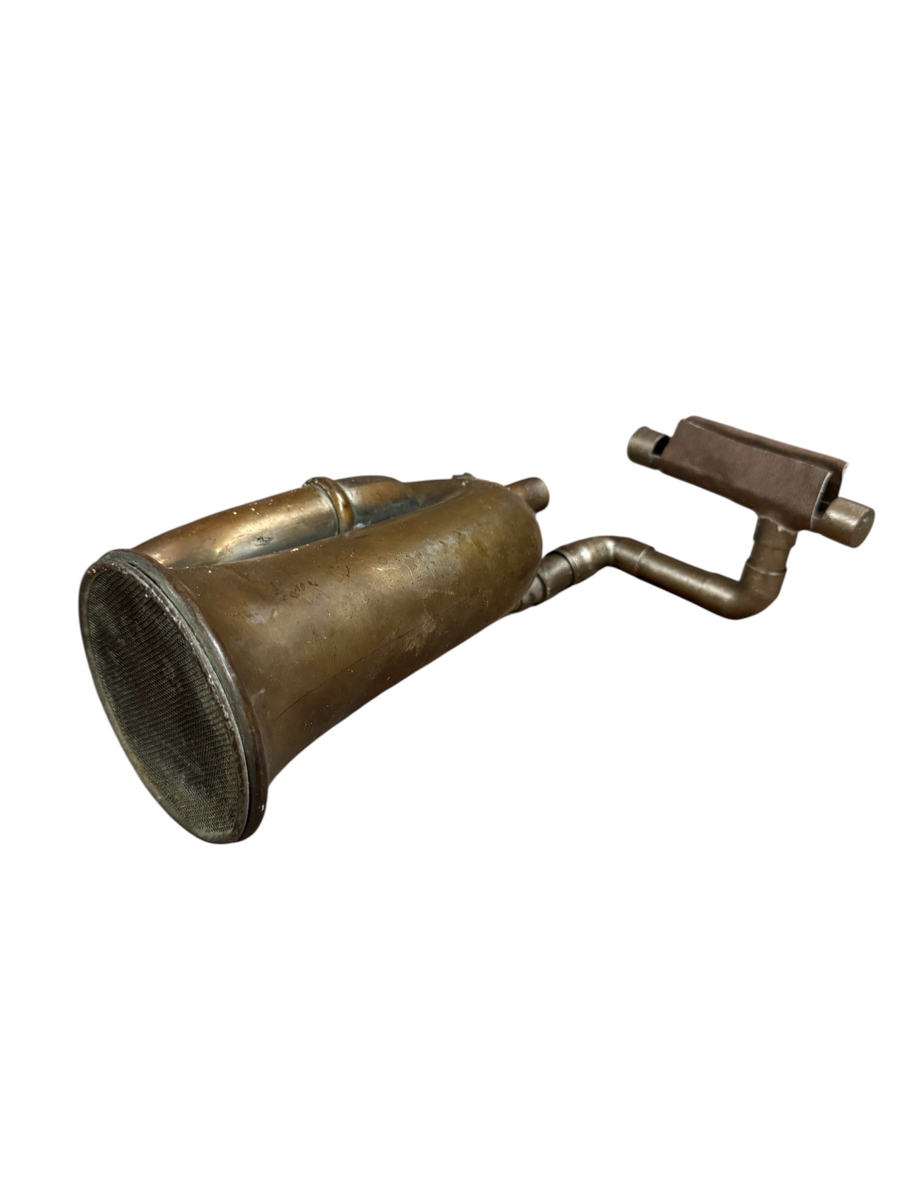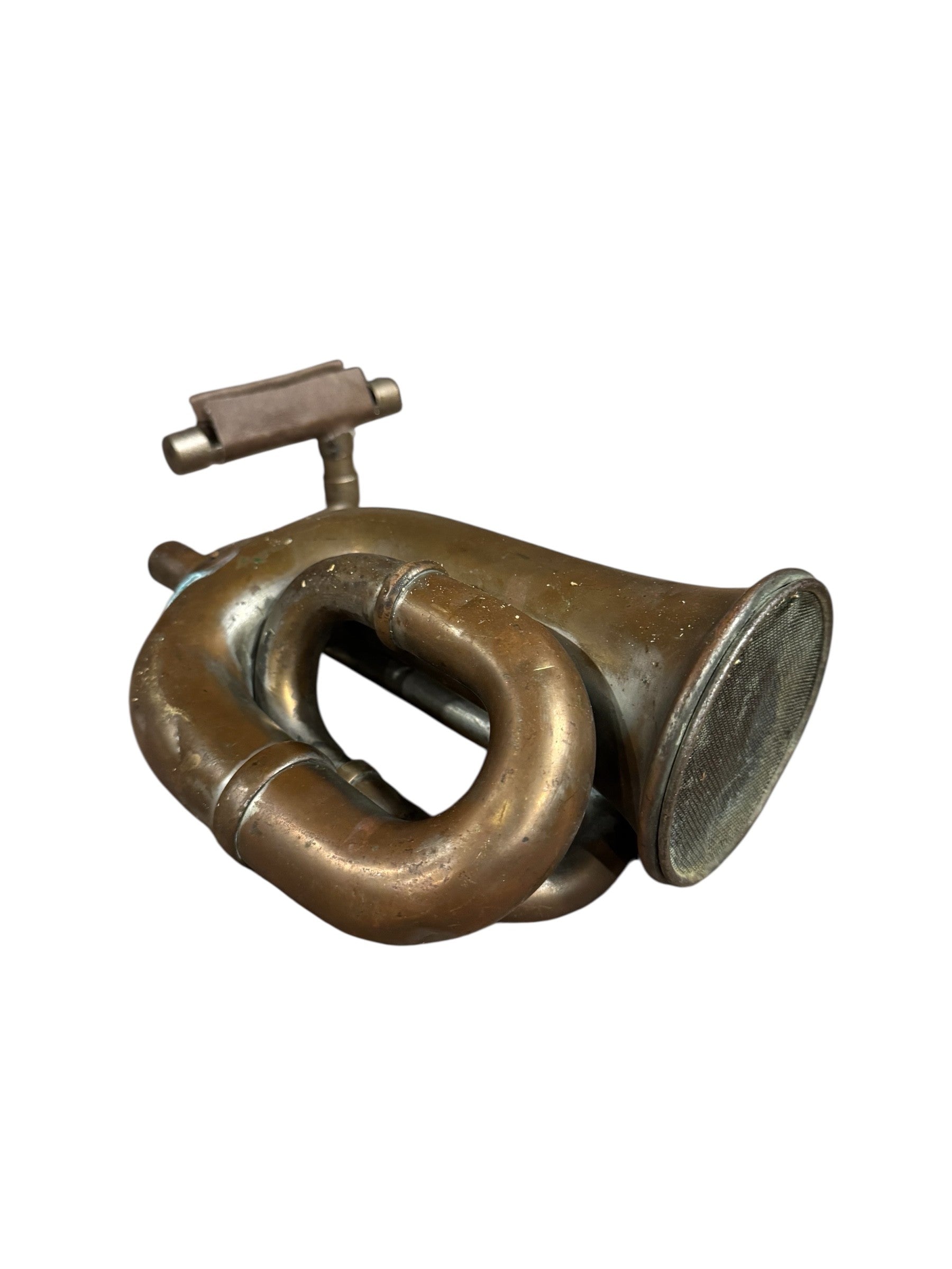 The Desmo iHORN is made from a brass vintage English Desmo automobile horn, made in the era of the Model T. Desmo horns are highly collectible in the automobilia world. The Desmo horn, also known as the cornicello, is a twisted horn-shaped symbol that originated in ancient Italy. It was a symbol of fertility and prosperity, and was often associated with the horns of sacred animals. Desmo Ltd. was founded in 1922. These horns were frequently used on MG automobiles, which are British made vehicles. From 1850 through the early 1950s, Birmingham was known as the area in England responsible for the manufacturer of brass and copper items. The Desmo is tuxedo sharp, formal but fertile. It is historic in the manner in which it contributed to the automotive experience, then and now.