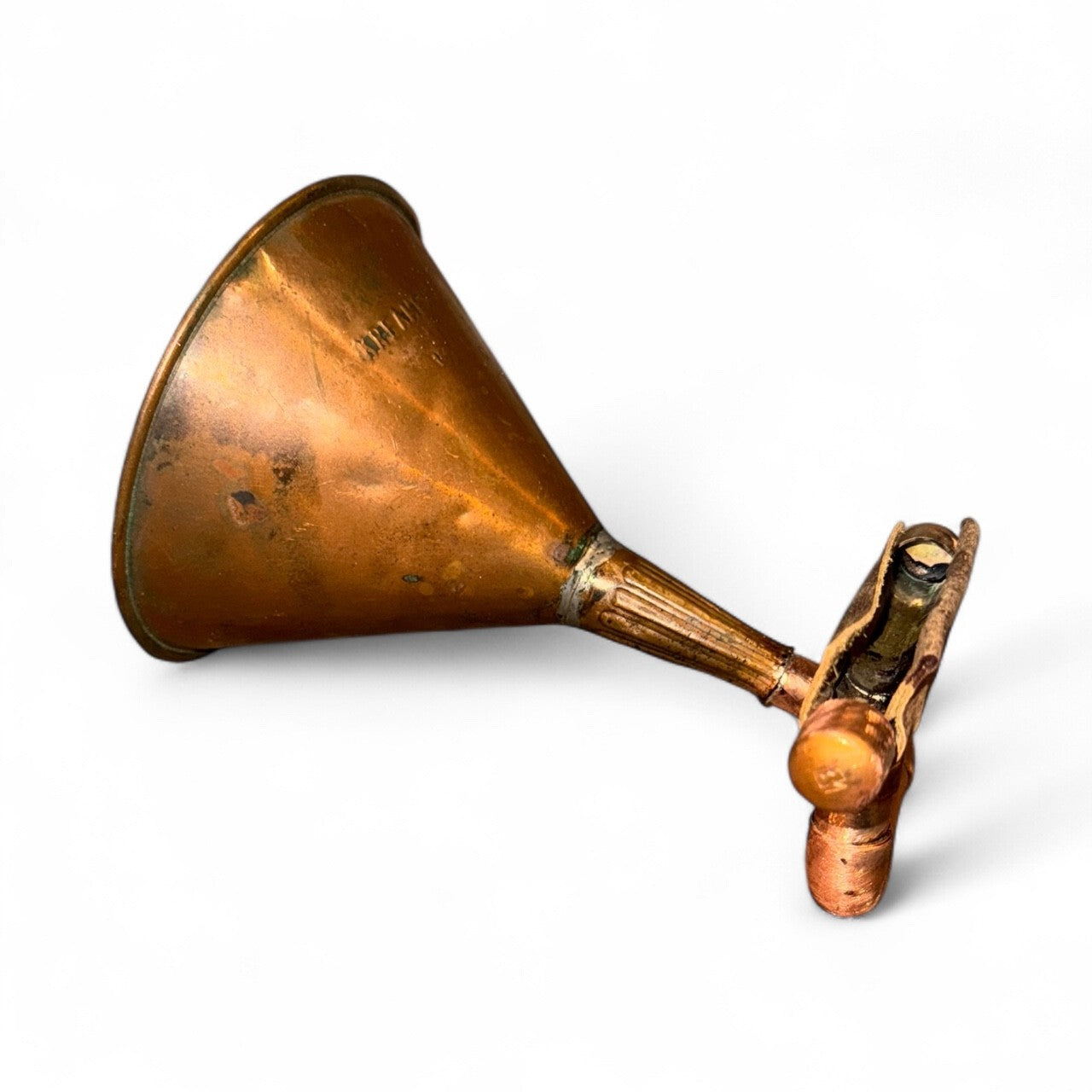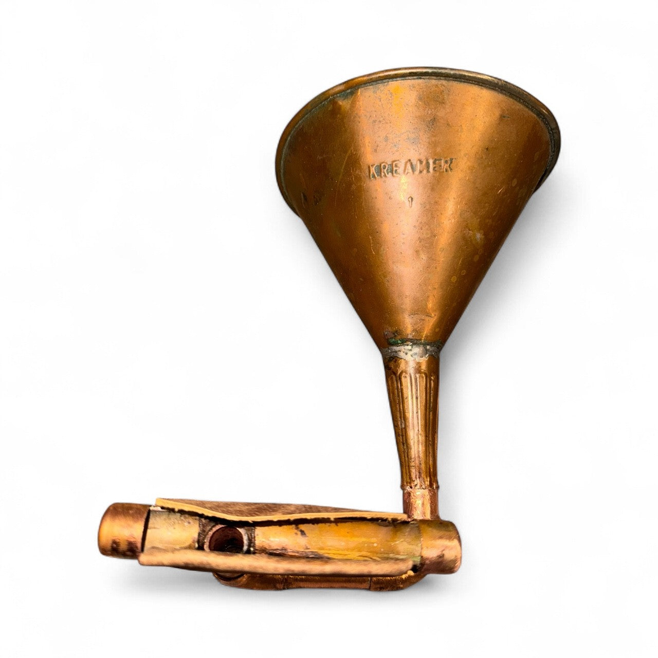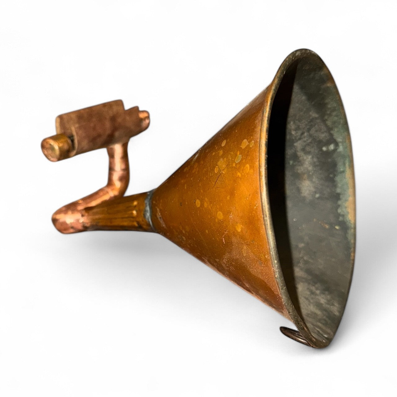 The Kreamery iHorn is made from a hand made antique copper funnel, probably from the prohibition era. Copper funnels were used as part of the still in the manufacture of illegal alcohol when our government decided it was prudent to legislate morality, an experiment gone awry. However, this one was probably used in the dairy industry. The Kreamery iHorn is a simple yet effective tool, its patina and functionality work as well today as when it was first made. Regardless of its age, The Kreamery iHorn is remarkable in simplicity and grace.