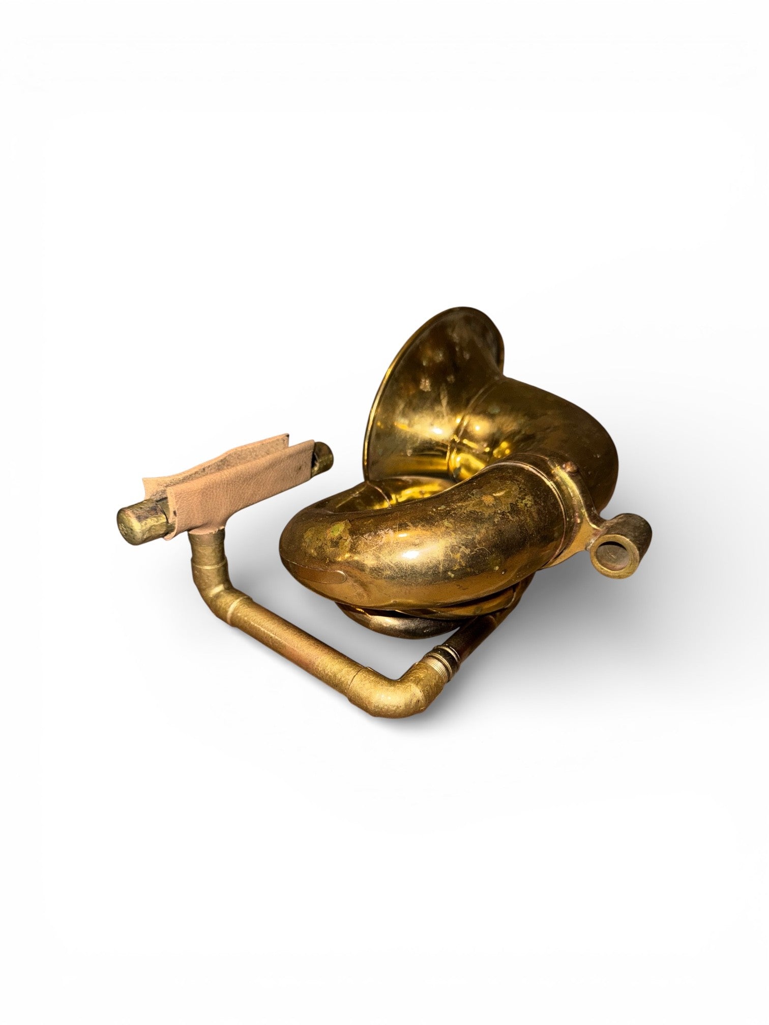 Le Cyrano iHorn is an 11’ triple twist brass car horn made between 1905 and 1910 in Paris by SMA. These were primarily used on Peugeot or Simca automobilies. SMA did not manufacture cars, but was rater an high-end ancillary metallergic part manufacturer. The branding “Le Cyrano” was a playful nod to the famous French character Cyrano de Bergerac, who was markedly known for his long nose. These horns are highly collectible and can be found in the Henry Ford Museum. Le Cyrano is an extremely rare horn which is simply a pleasure to the eye and the ear. So alert yourself and others, Le Cyrano iHorn is not only a centurian, but it demonstrates that we all need to be heard, oui?