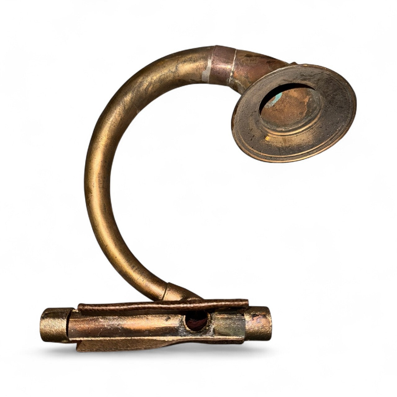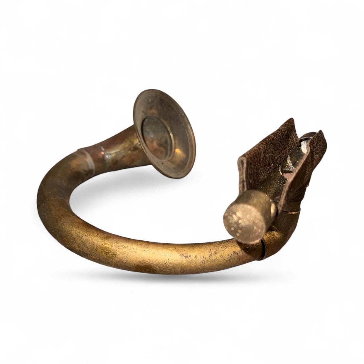 The Model T iHorn is made using a bulb horn from a Ford Model T automobile. The Model T was produced by Ford Motor Company from 1908 to 1927. The production of the Model T was responsible for the creation of assembly line manufacturing. The standard 4-seat open tourer of 1909 cost $850; in 1913, the price dropped to $550 and $440 in 1915. Sales were 69,762 in 1911; 170,211 in 1912; 202,667 in 1913; 308,162 in 1914; and 501,462 in 1915. By the 1920s, the price had fallen to $260 because of increasing efficiencies of assembly line technique and volume. By 1915, Model T's came equipped with a Klaxon "aw-ooga" horn. Therefore, the bulb horn was only used between 1908 and 1915, making this horn approximately 100 years old. The Model T is small but dynamic. Travel safely. [NOTE: WHEN THERE IS MORE THAN ONE IN INVENTORY, THE HORNS ARE SUBSTANTIALLY SIMILAR WITH ONLY A MINOR DIFFERENCE IN PATINA]