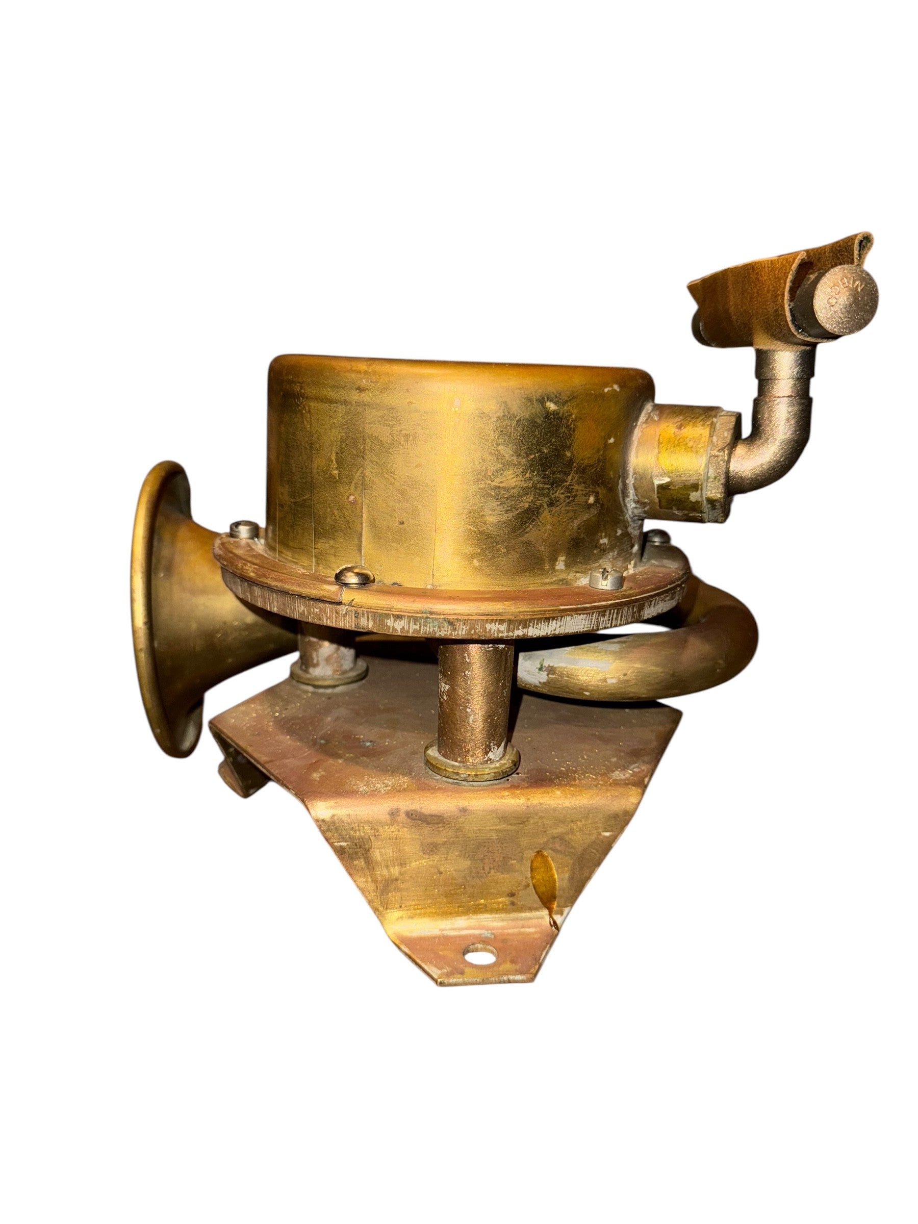 The Navy Siren iHorn is made from a vintage WWII Navy Federal Signal Horn.  Most of these signal horns were made in the early 1940’s.  This particular one was mounted on a ship to alert the sailors of incoming missiles.  They were also used in factory and other commercial settings to signal air raids, fires and other calamities.  Simple, sturdy and alarming, the Navy Siren iHorn will put you on notice.