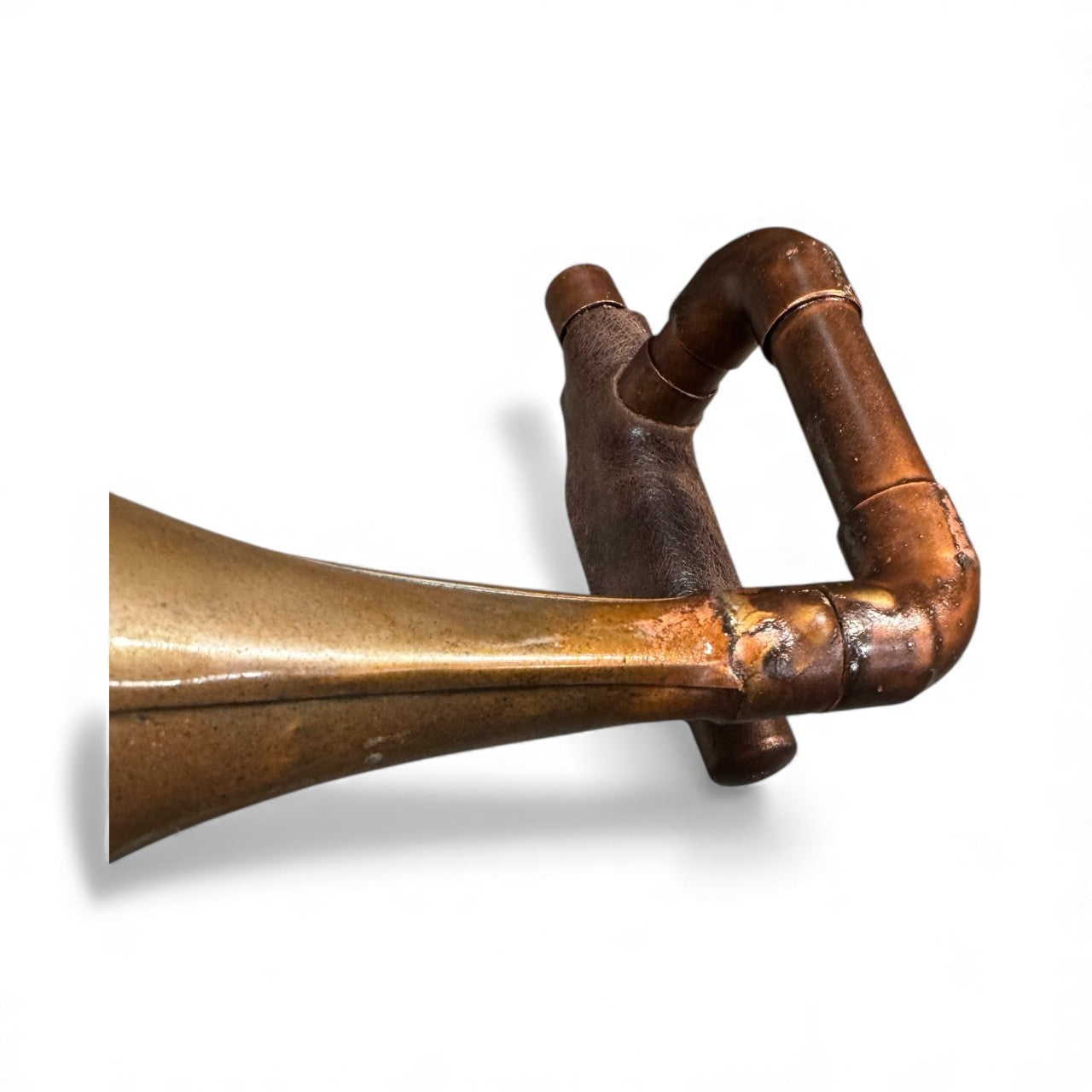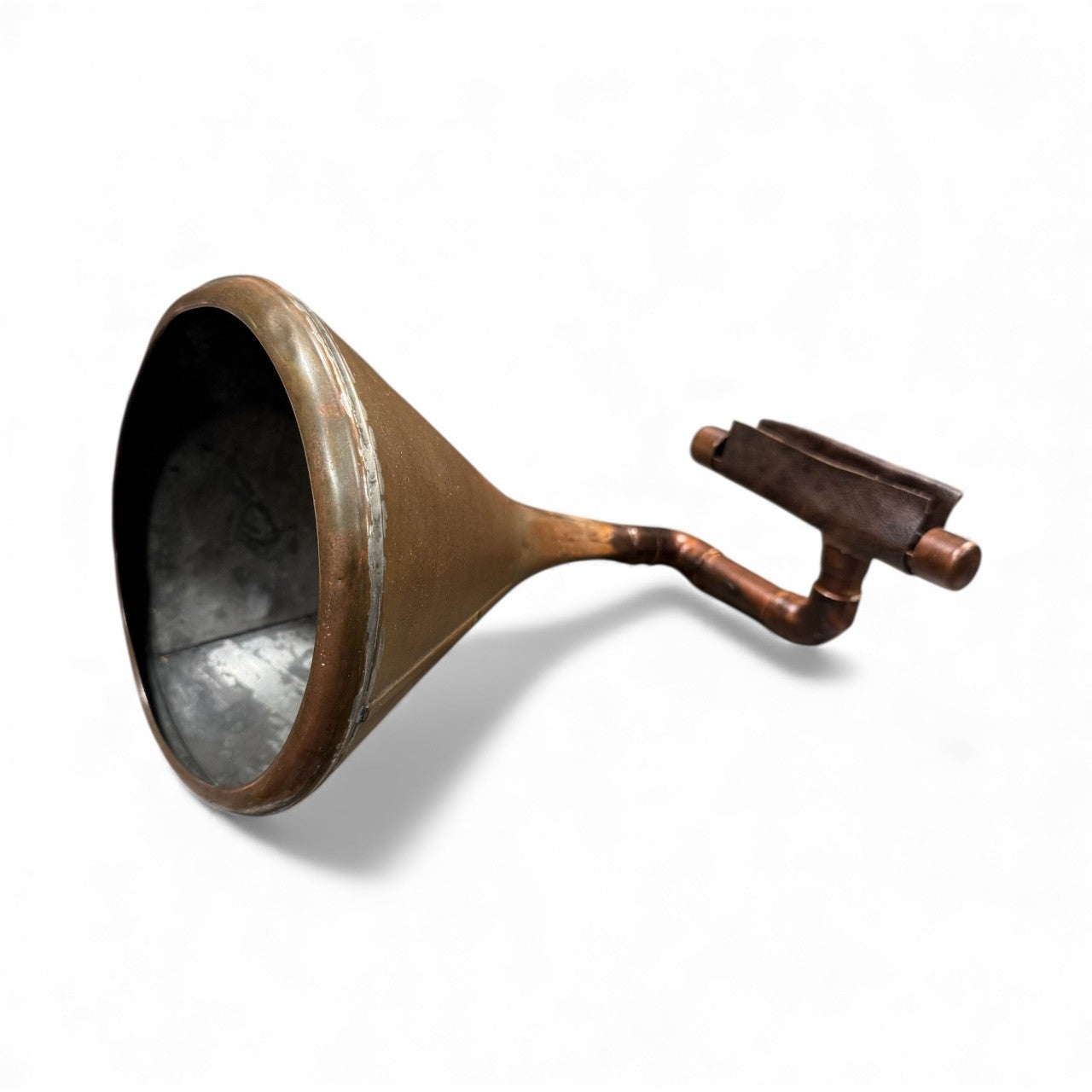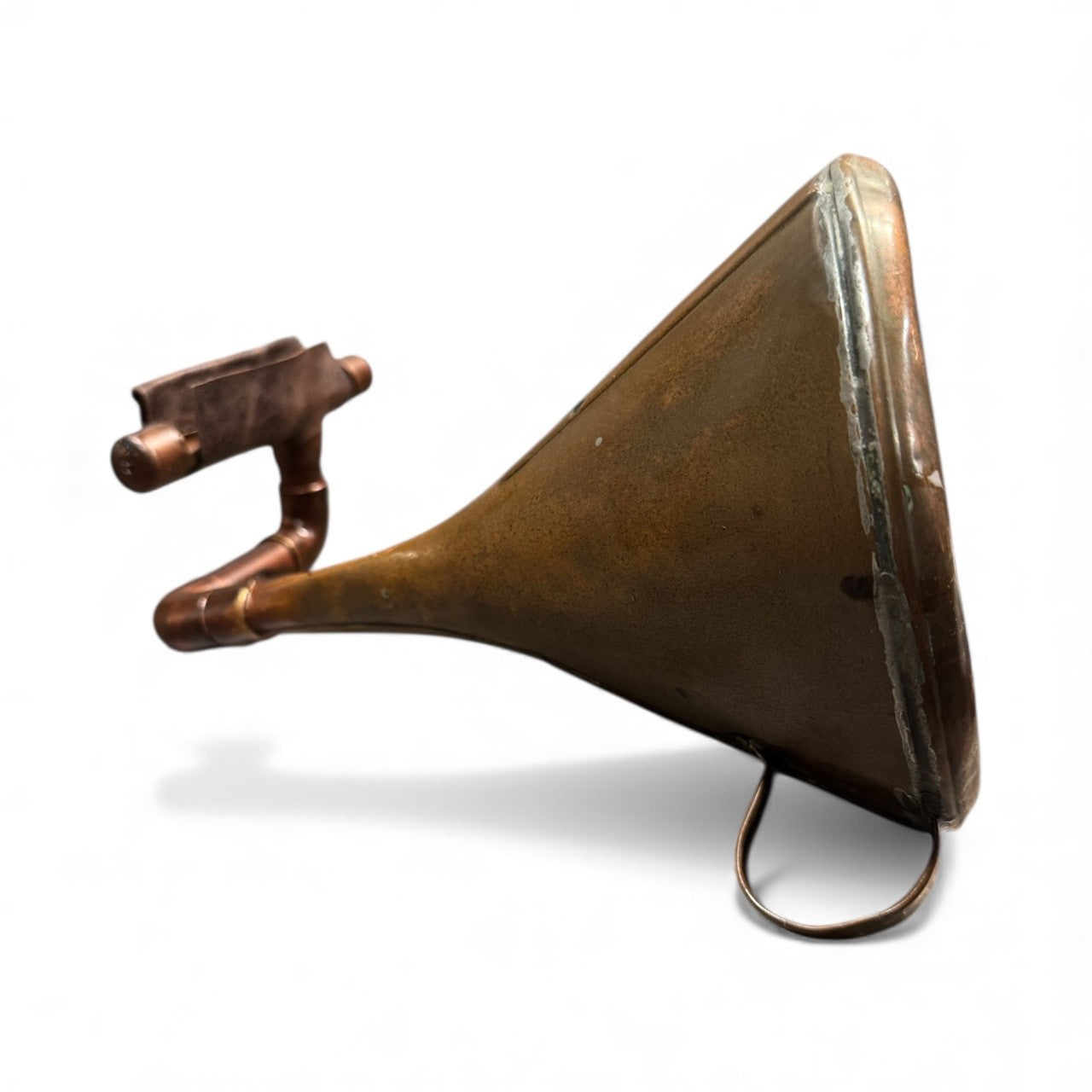 The Copper Funnel iHorn is made from a hand made antique copper funnel, probably from the prohibition era. Copper funnels were used as part of the still in the manufacture of illegal alcohol when our government decided it was prudent to legislate morality, an experiment gone awry. The Copper Funnel iHorn is a simple yet effective tool, its patina and functionality work as well today as when it was first made. Regardless of its age, The Copper Funnel iHorn is remarkable in simplicity and grace.
