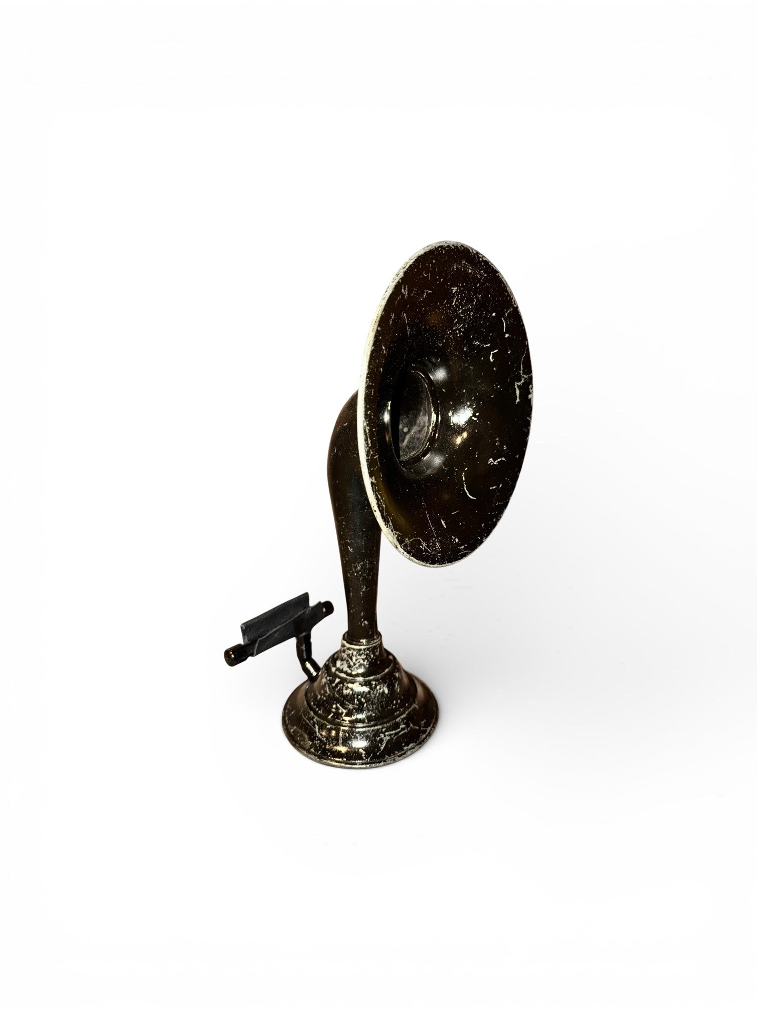 The Quali-Tone iHorn is made from a 1923 Style E Duro Metal Products Co. horn. It was made in Chicago, Illinois. It’s probable initial price was approximately $7.50 as all other Duro Metal horns sold for that same price. Its matte black finish is a reminder that fashion is cyclical, so decide your style and stick with it and every twenty years or so you will be at the height of fashion. Duro Metal was a maker of woodworking and metal-working machinery, established in 1917, but really started to pick up steam in the early 1930s with the decrease in cost of small motors that enabled "portable" (i.e., not driven by line-shaft) machinery. Duro machines were aimed at the light industrial and high-end home users. Duro's lathe was sold by Montgomery Ward. The company survived to at least 1981. The Quali-Tone iHorn is a small but extremely valuable piece of radio horn history. It’s patina once again reminds us that age is beautiful when viewed with the correct lens. It is a reminder that good things come in small packages and even the smallest of us has a voice.