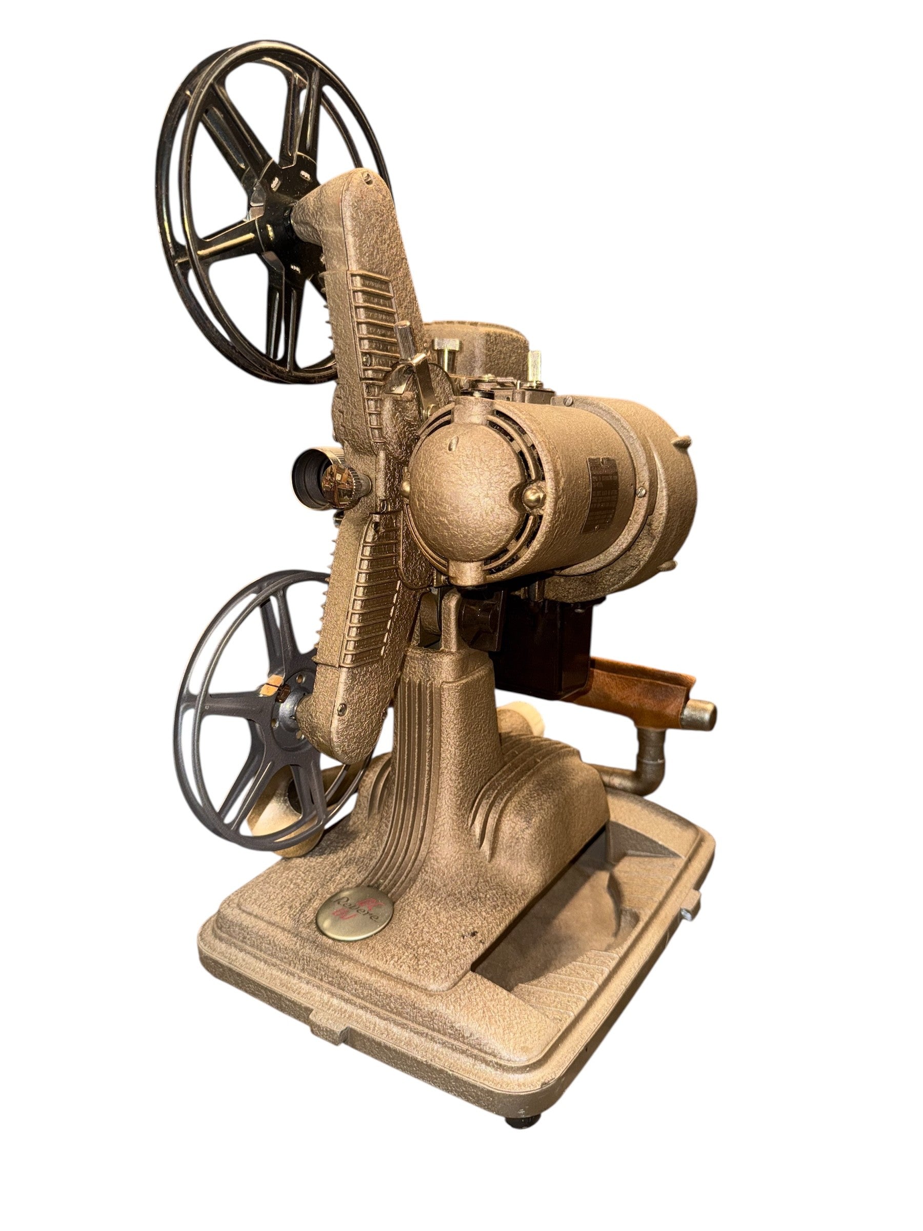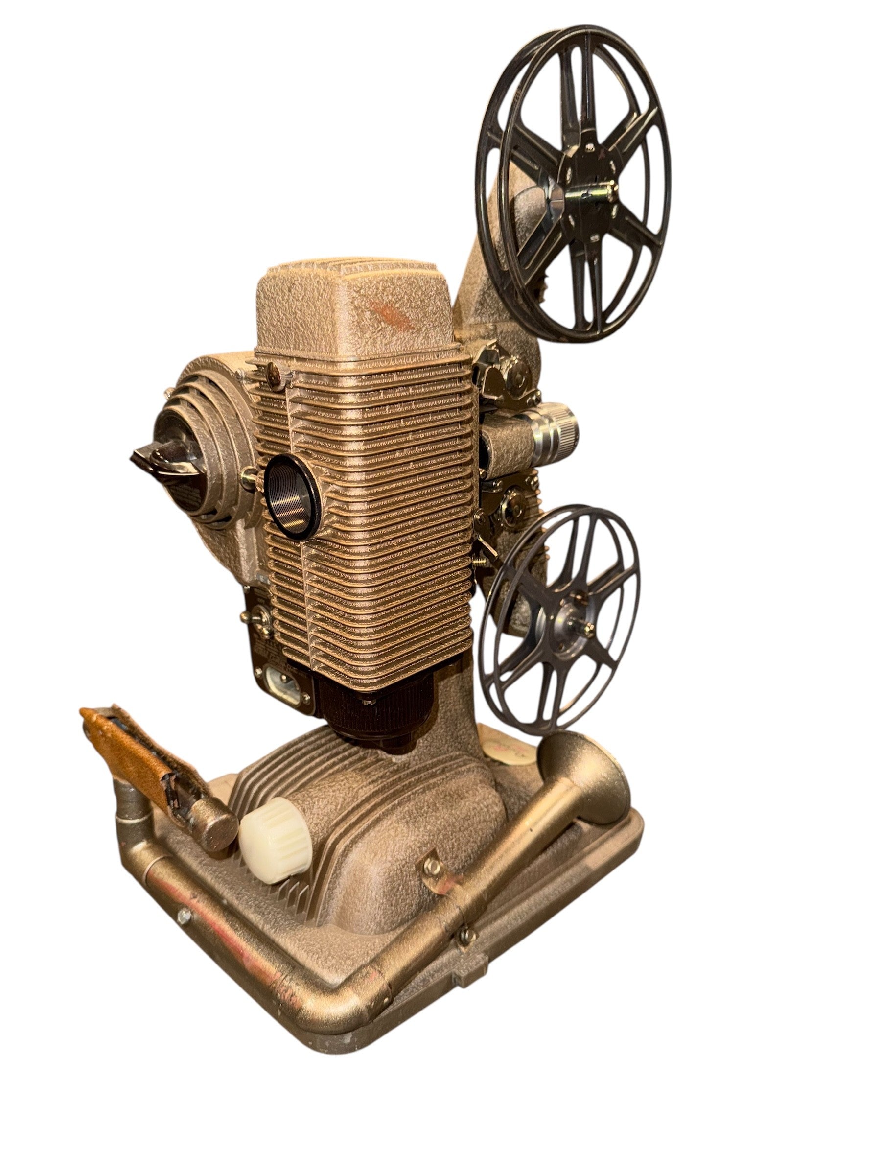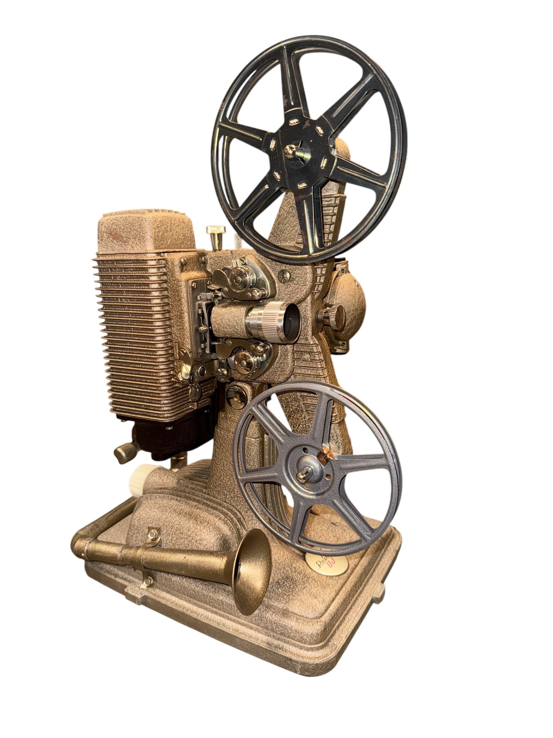The Revere 85 iHorn is made from a Revere 85 8 mm movie projector made in 1948. The company was founded in 1920 in Chicago by a Ukrainian immigrant to manufacture car radiators, but within a decade of its founding, the company was also making household products. They started making budget 8 mm movie cameras in 1939. In the '50s the company was the second largest manufacturer of small movie cameras in the USA. Revere purchased an optical company to make better quality lenses and added some flair to enter the high end premium projector market. When the founder developed inoperable cancer in 1960, Revere was sold to 3M for $17,000,000.00. Music and film are conjoined twins. The earliest movies had no sound, but were usually accompanied by live music which was attempted as synchronized with the action on the silver screen. The first known public exhibition of projected sound films took place in Paris in 1900, but the technology took decades to perfect. By the early 1930s, the talkies were a global phenomenon. The Revere 85 iHorn is unique and entertaining. So pop the corn, dim the lights, and prepare for lights, camera and action.