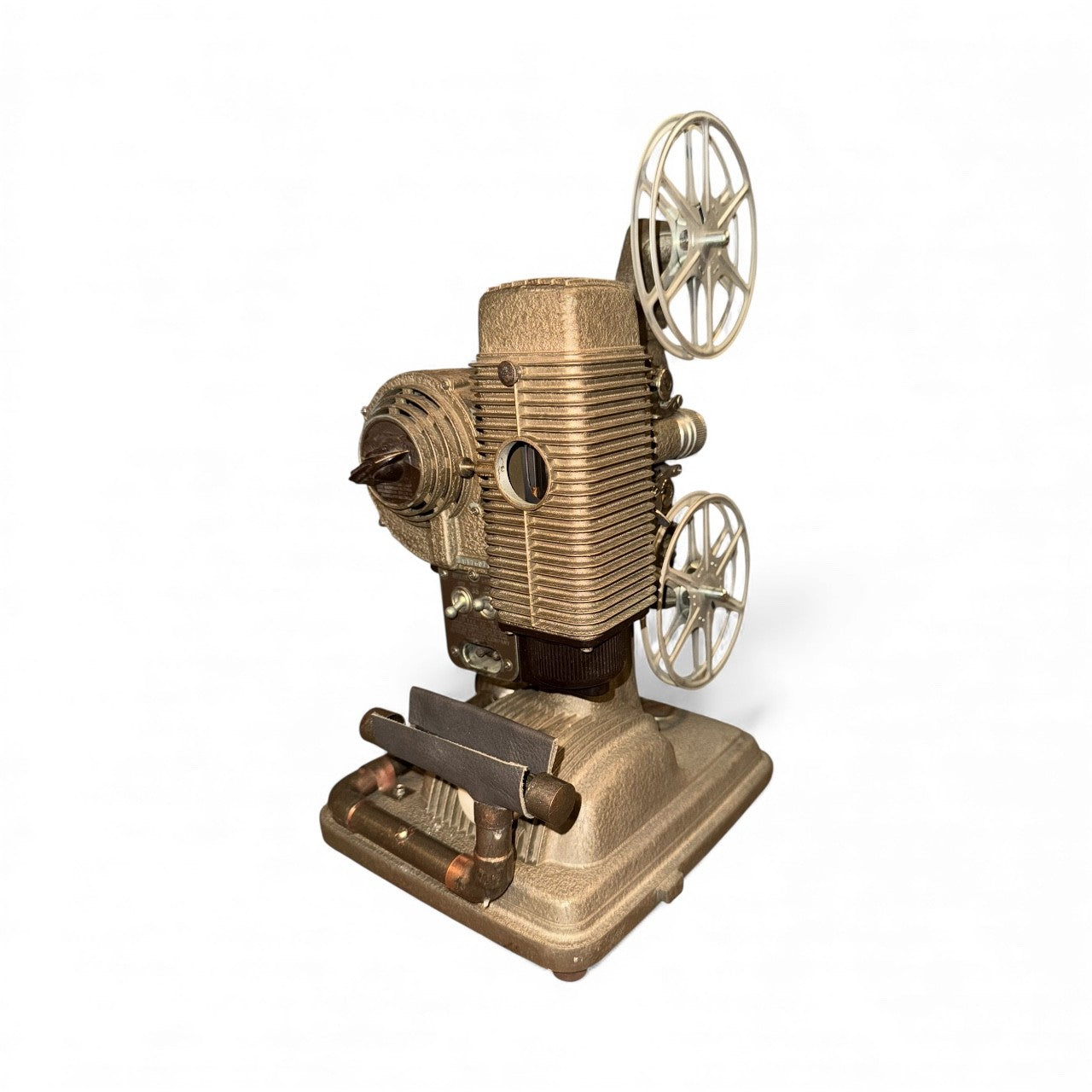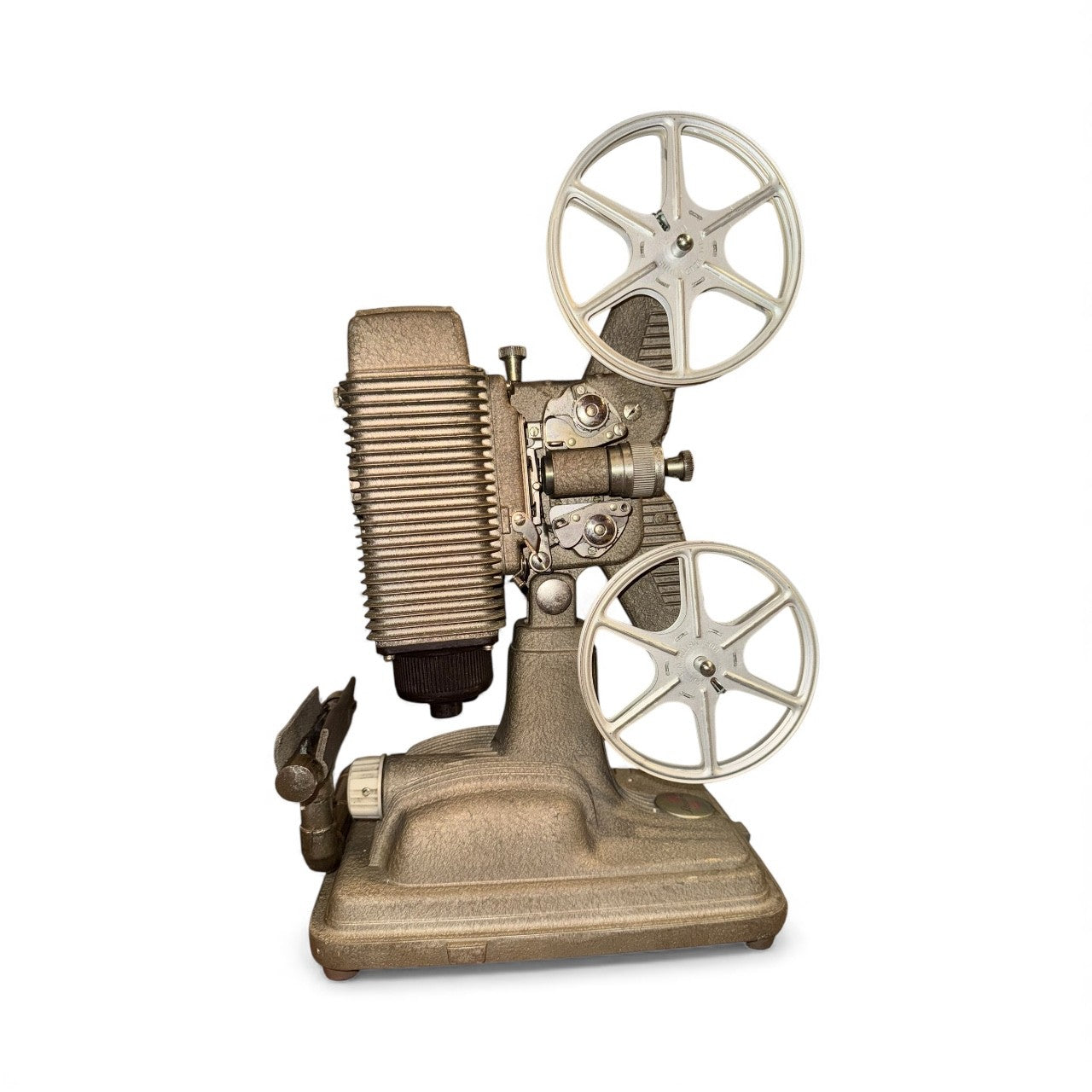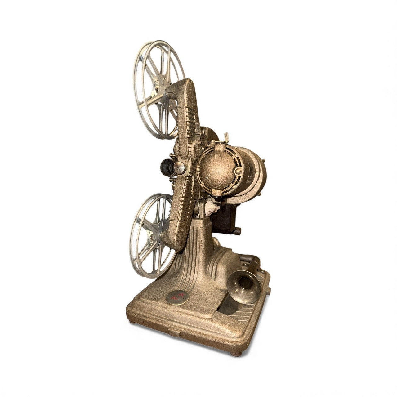 The Revere 85 iHorn is made from a Revere 85 8 mm movie projector made in 1948. The company was founded in 1920 in Chicago by a Ukrainian immigrant to manufacture car radiators, but within a decade of its founding, the company was also making household products. They started making budget 8 mm movie cameras in 1939. In the '50s the company was the second largest manufacturer of small movie cameras in the USA. Revere purchased an optical company to make better quality lenses and added some flair to enter the high end premium projector market. When the founder developed inoperable cancer in 1960, Revere was sold to 3M for $17,000,000.00. Music and film are conjoined twins. The earliest movies had no sound, but were usually accompanied by live music which was attempted as synchronized with the action on the silver screen. The first known public exhibition of projected sound films took place in Paris in 1900, but the technology took decades to perfect. By the early 1930s, the talkies were a global phenomenon. The Revere 85 iHorn is unique and entertaining. So pop the corn, dim the lights, and prepare for lights, camera and action.