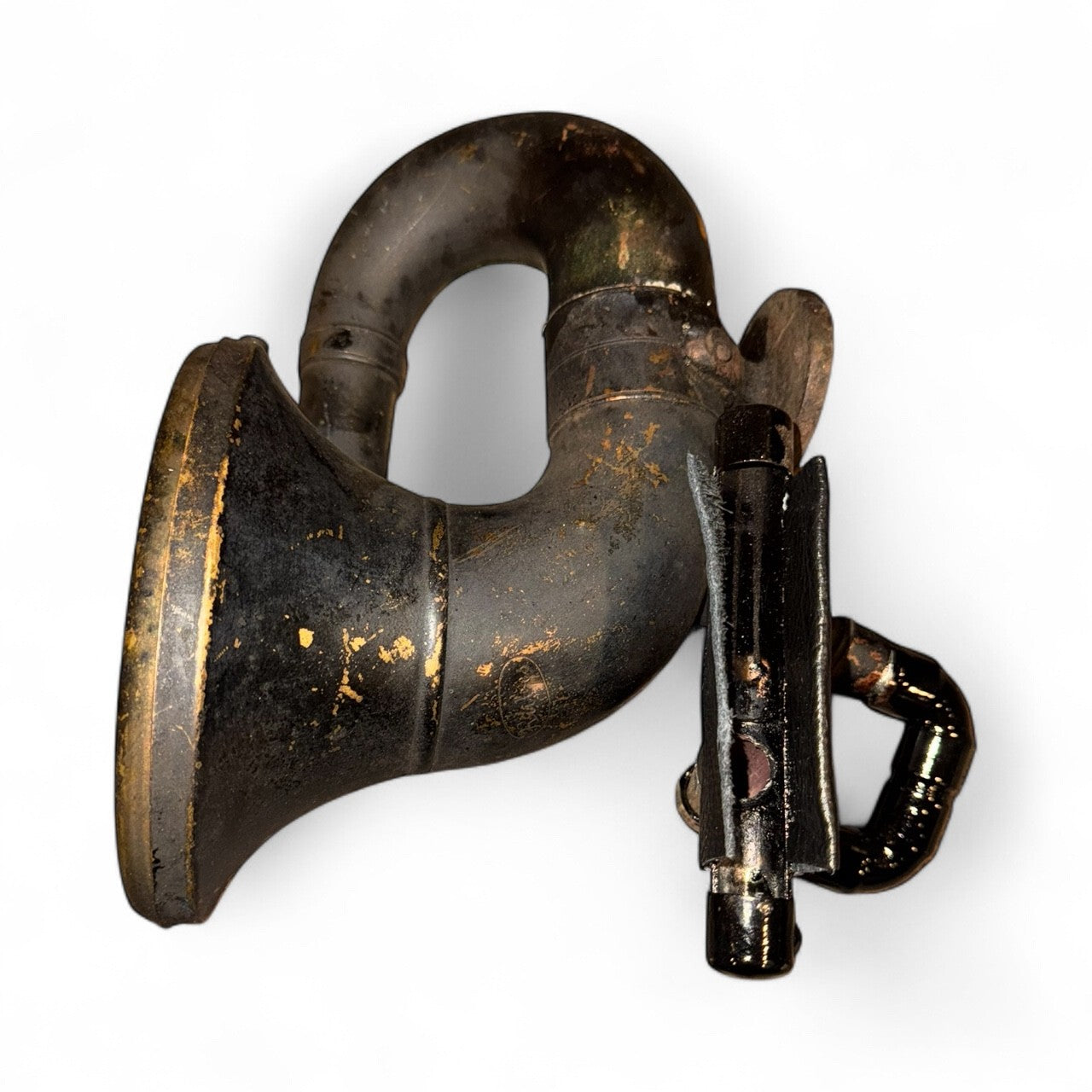 The Rubes iHORN is made from a brass Rubes horn which was mounted on a Model T.  The oval shaped mounting bracket which bolted to the firewall indicates that the horn was made between 1914 and 1915.  The  Rubes horn was connected to a bulb which was inside the cab of the Model T and was squeezed to emit the horn noise.  As originally constructed, the opening of the horn had a screen which kept foreign particles from entering the horn.  Rubes horns are highly collectible and valued in the vintage automobile collector market.The Rubes iHorn is  part of the industrial revolution and early Americana.  It is historic in the  manner in which it contributed to the automotive experience.