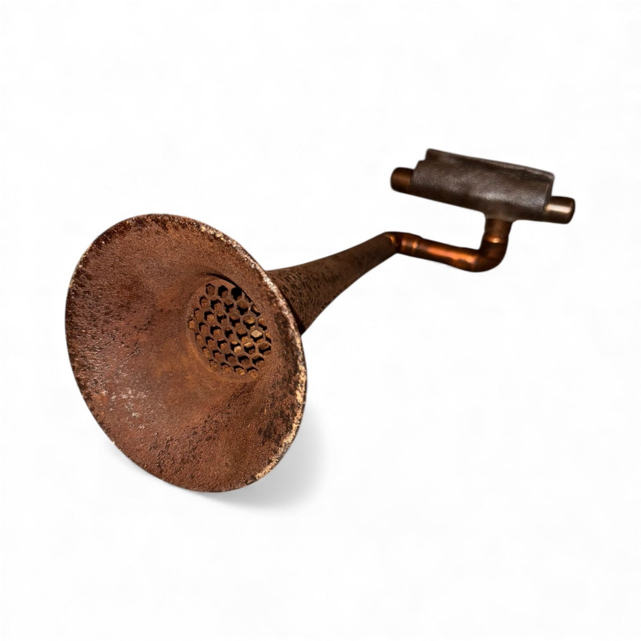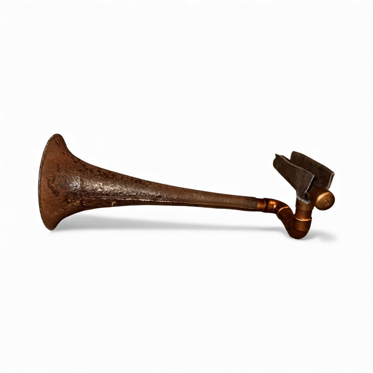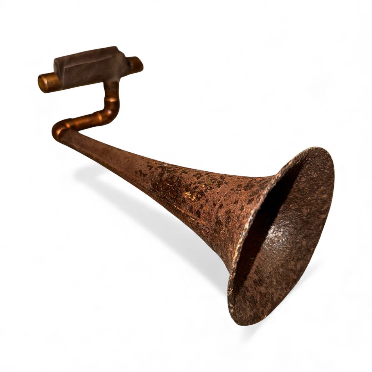 The Jubilee iHorn is made from a 1940’s Jubilee Piggyback horn. It was called a piggyback horn because attached to it is a second smaller “snail” type horn, each of which emitted a different tone, making the horn capable to two tones with volume. The base is an antique lamp base. In history, society was transformed by communication and movement. Hope and prosperity were represented by the mobility which was created by automobiles and the signal which announced your coming of age was the horn. So, tell the world you have arrived with The Jubilee iHorn! [NOTE: There are 2 of these in Inventory which look exactly the same}