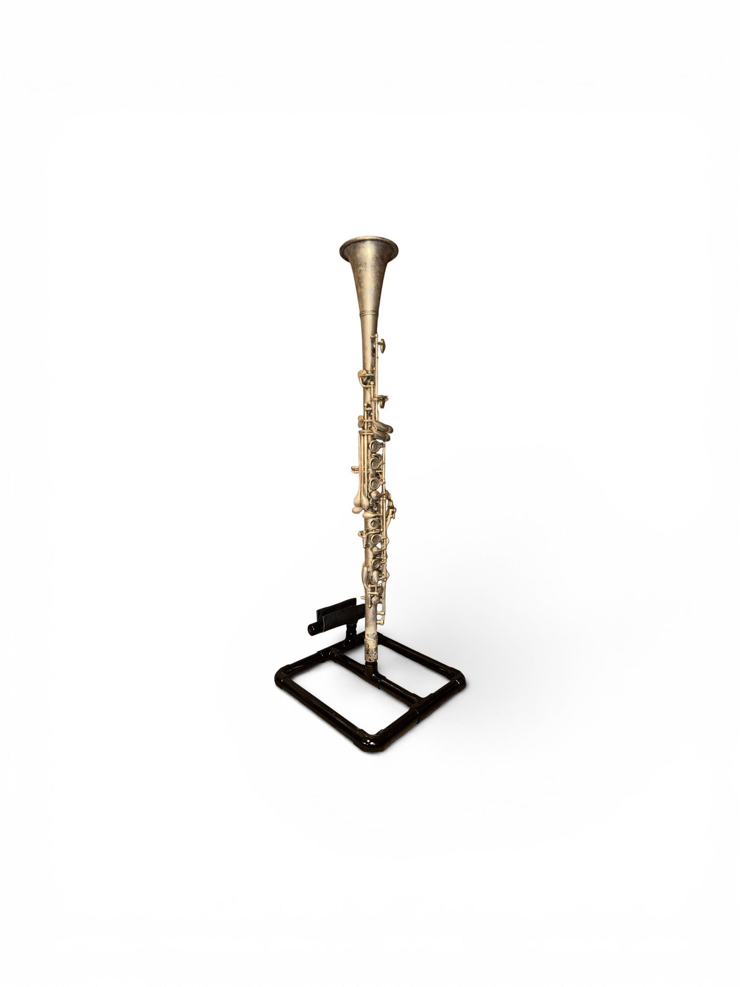 The Soprano Sax iHorn is made from an antique Saxophone, made between 1915 and 1930. Its patina speaks of the passing of substantial periods of time. The soprano saxophone was designed around 1840. It is the third smallest member of the saxophone family, which includes sopranissimo, sopranino, soprano, alto, tenor, baritone, bass, contrabass saxophone. Soprano saxophones are the smallest and thus highest-pitched saxophone in common use. In the 1840s and 1850s, saxophone's gained use in small classical ensembles (both all-saxophone and mixed), as a solo instrument, and in French and British military bands. Today, the Saxophone is used in all musical settings, from symphony to rock. The Soprano Sax is tall and slender, with a loud deep voice. It is pure in its essence and once again demonstrates the beauty of age. Don’t overlook the elderly.
