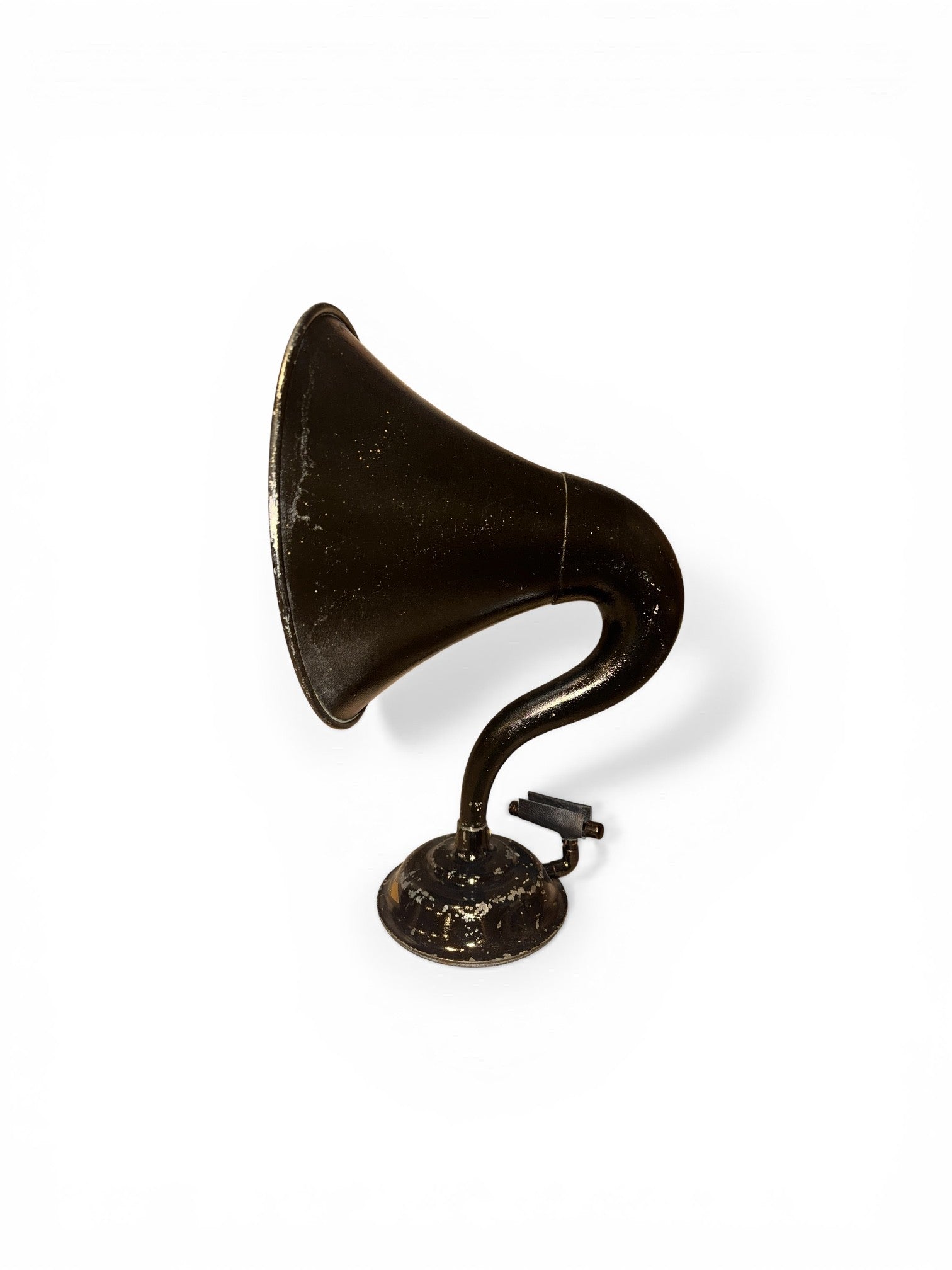 The Splitdorf iHorn is made from a 1920’s Splitdorf radio horn which has been clear coated to protect its finish. Splitdorf was originally founded in 1858, but when its success became apparent and it competed with Edison, the big boy gobbled it up through corporate acquisition and merger. Unfortunately, by January 1929, Splitdorf had been consumed by Edison. Nonetheless, The Splitdorf iHorn is stately and classic. Its aluminum horn produces a volume of sound which is unparalleled. Its patina reflects an ageless quality which is rough yet gentle. It is flat out sexy.