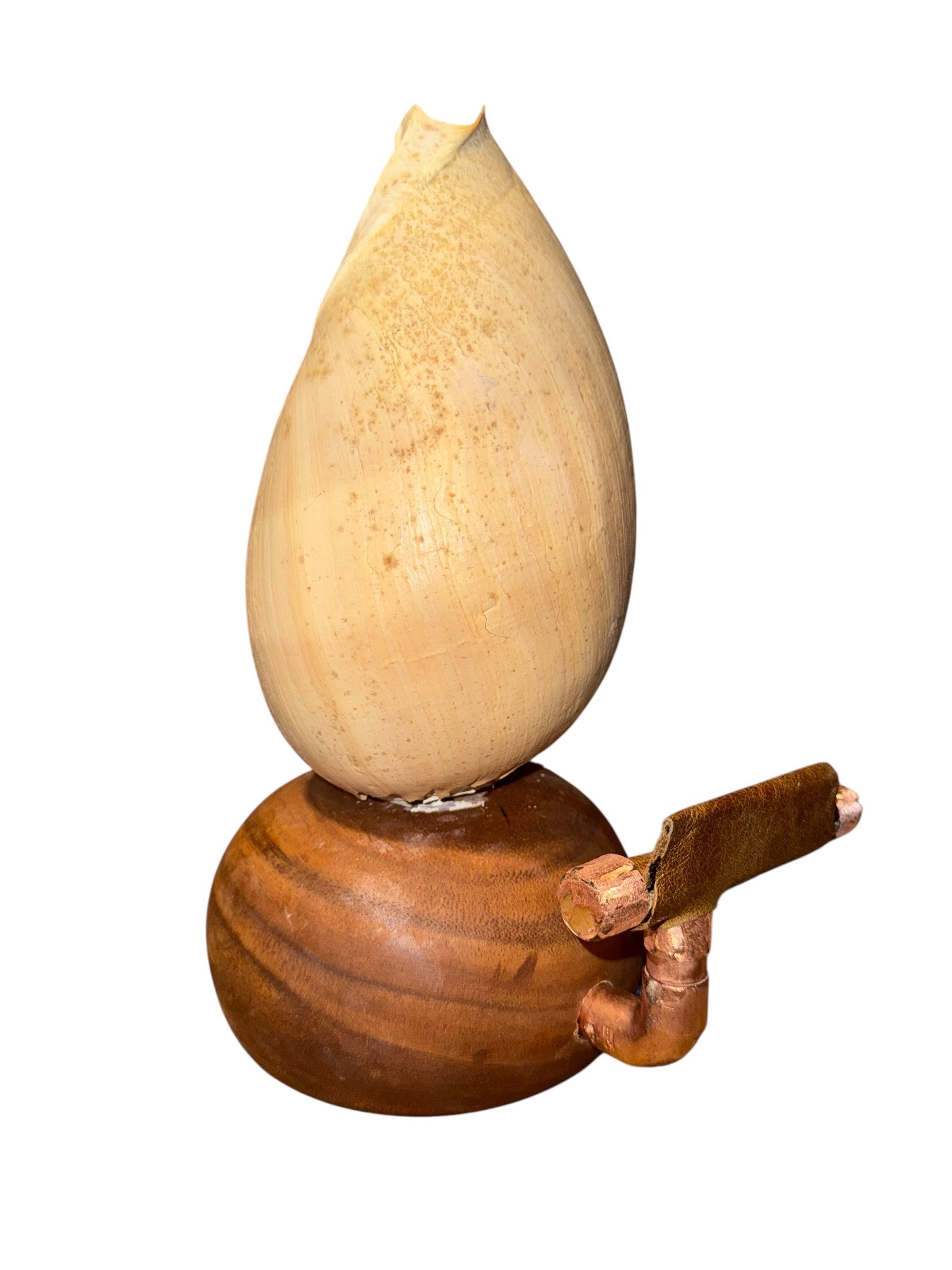 The Conch iHorn is a beautiful piece combining the elements of the earth and the sea to bring about melodies which are soothing and pleasing to the senses. The Conch shell is from the Florida Keys. The base is a midcentury Japanese bowl. Both maintain their original forms to remind us that nothing can match the marvel and beauty of nature. The Conch iHorn is voluminous and continuous, like waves lapping at the beach. The Conch is a pleasure to both listen to and view.