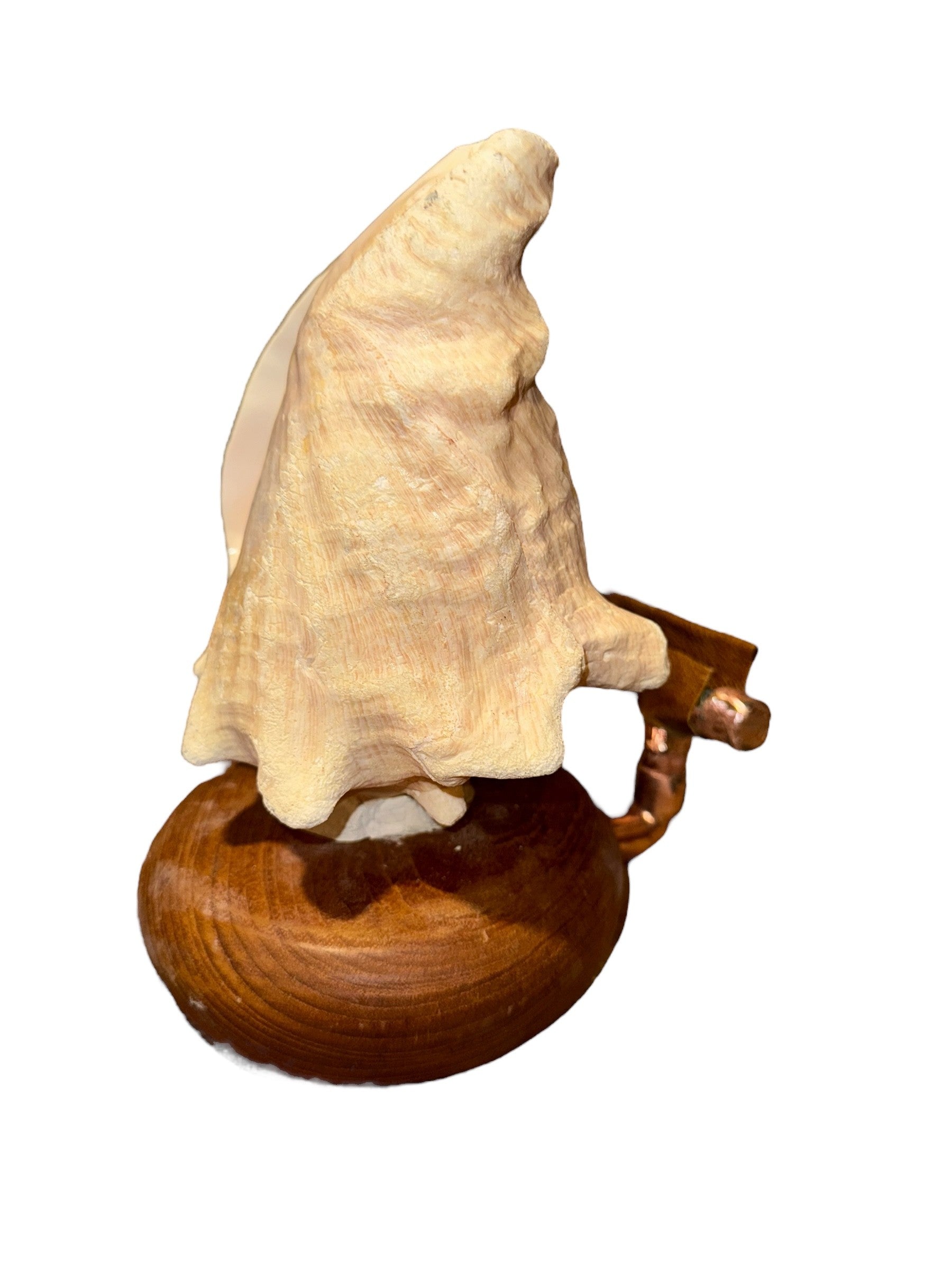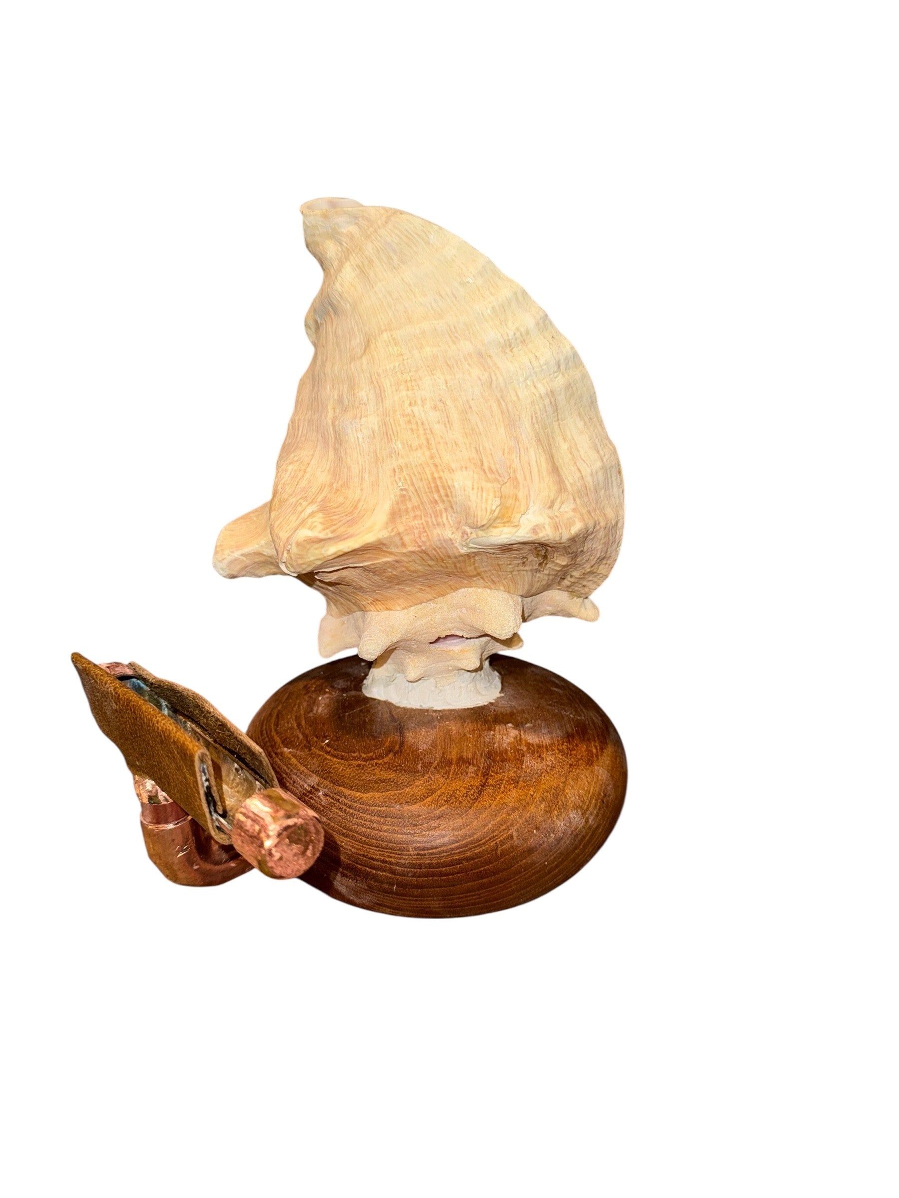 The Conch iHorn is a beautiful piece combining the elements of the earth and the sea to bring about melodies which are soothing and pleasing to the senses. The Conch shell is from the Florida Keys. The base is a midcentury Japanese bowl. Both maintain their original forms to remind us that nothing can match the marvel and beauty of nature. The Conch iHorn is voluminous and continuous, like waves lapping at the beach. The Conch is a pleasure to both listen to and view.