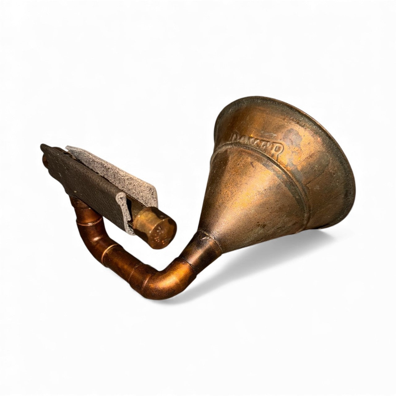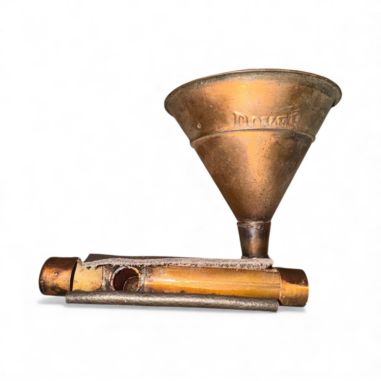 The Dover iHorn is made from an antique copper funnel, probably from the prohibition era. Copper funnels were used as part of the still in the manufacture of illegal alcohol when our government decided it was prudent to legislate morality, an experiment gone awry. The Dover iHorn is a simple yet effective tool, its patina and functionality work as well today as when it was first made. Regardless of its age, The Dover iHorn is remarkable in simplicity and grace.