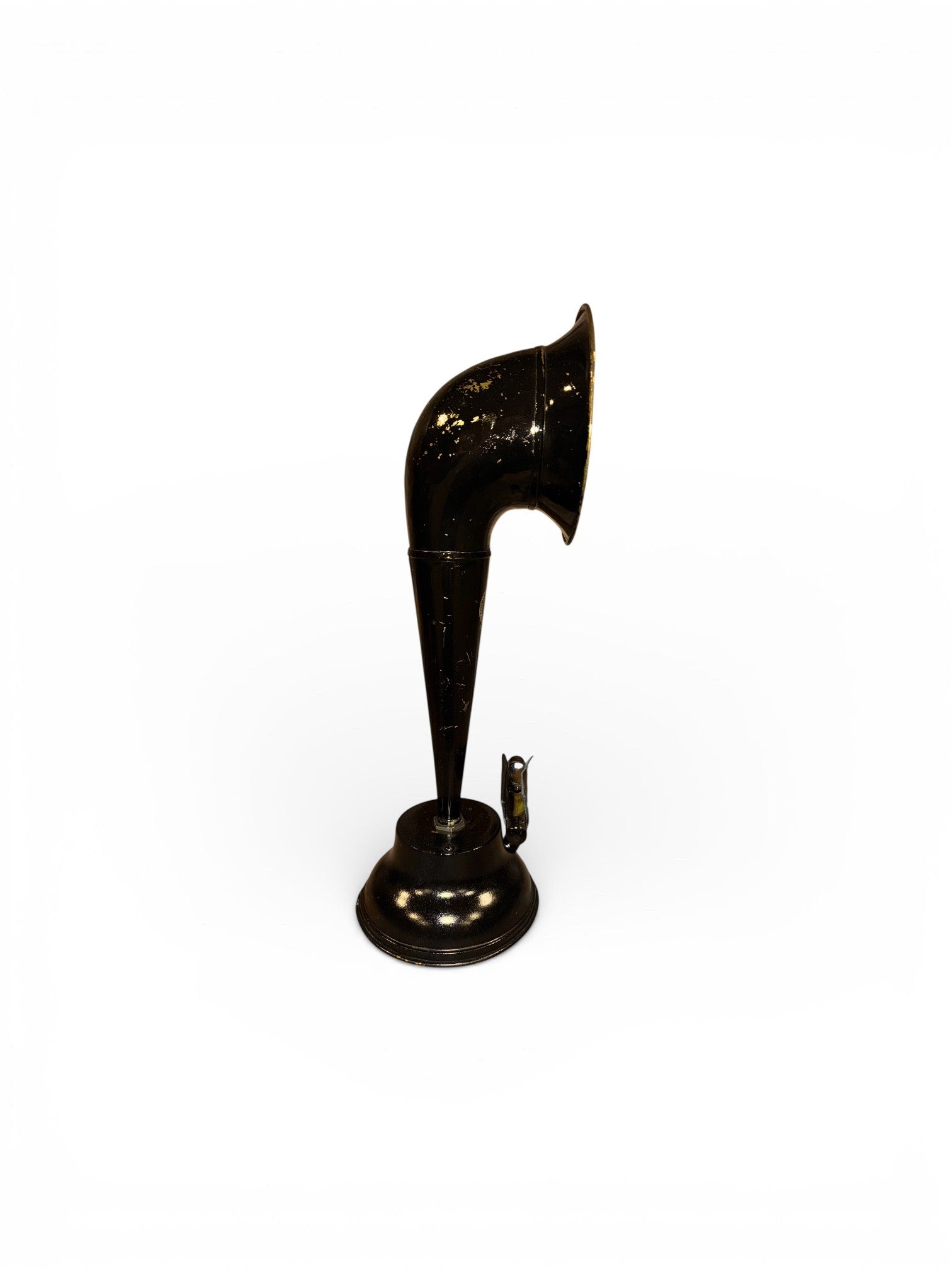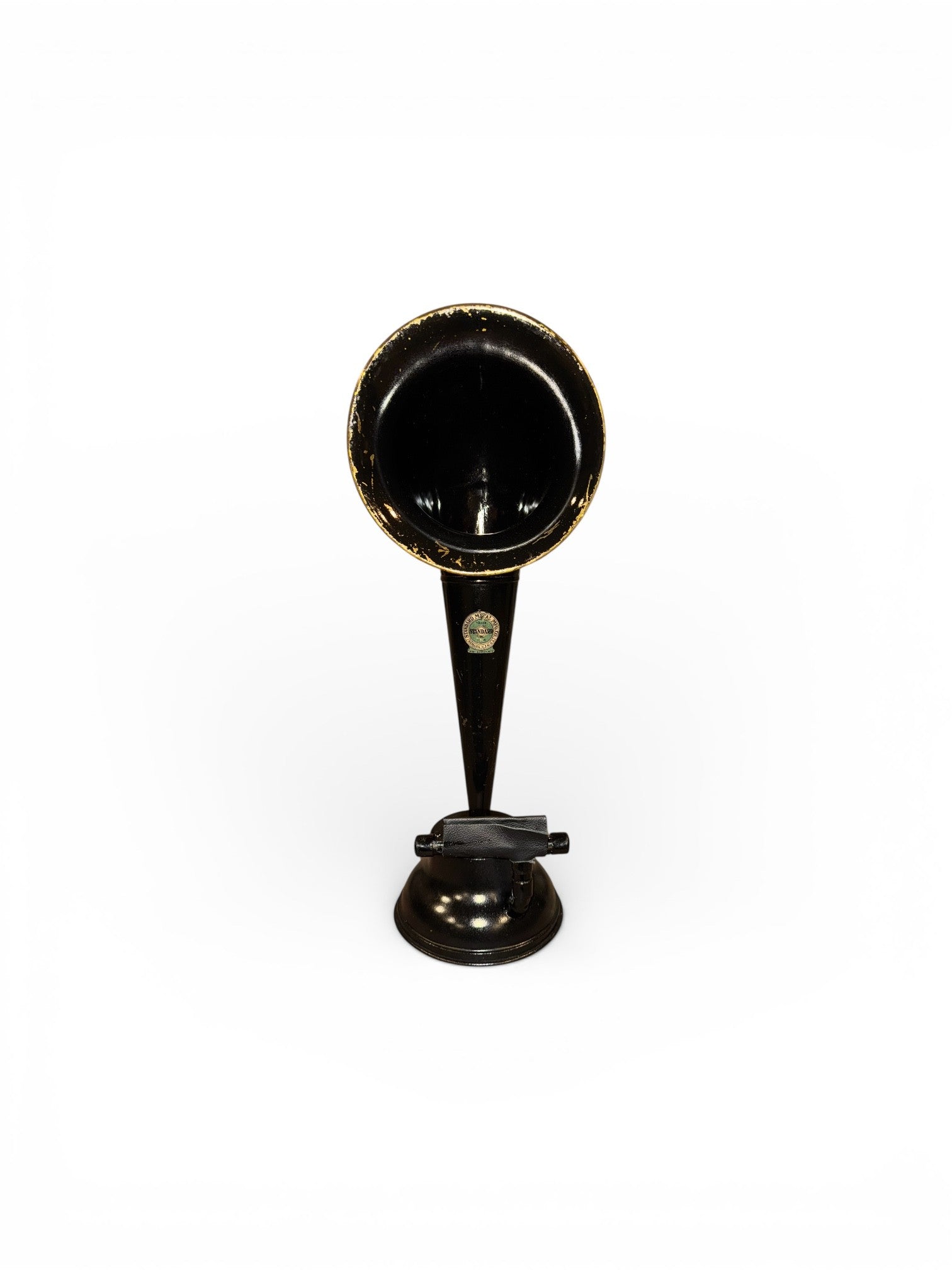 The Standard iHORN is made from a brass Standard Metal Manufacturing Radio Horn made in Newark, New Jersey. It was made in 1922. The attached advertisement shows that depending on the height of the original model it sold for either $5.00 or $7.50. The instant model sold for $7.50. New Jersey has a very long history with manufacturing that stretches far back into colonial times and was considered one of the main manufacturing centers in the United States for decades. This horn is but one example of the then prowess of Americans to make products in America. While little is known of the Standard Metal Manufacturing Company today, this horn was obviously a utilitarian horn designed to work with any radio receiver. It is a rare horn which the advertisting got right – “We figure on Special Horns for Manufacturers.” The Standard is indeed a special horn.